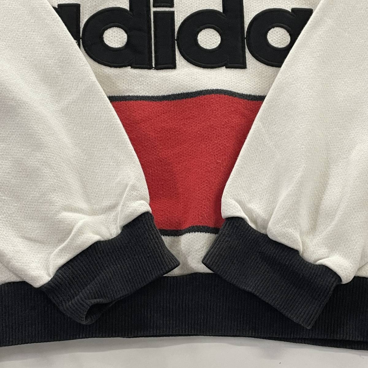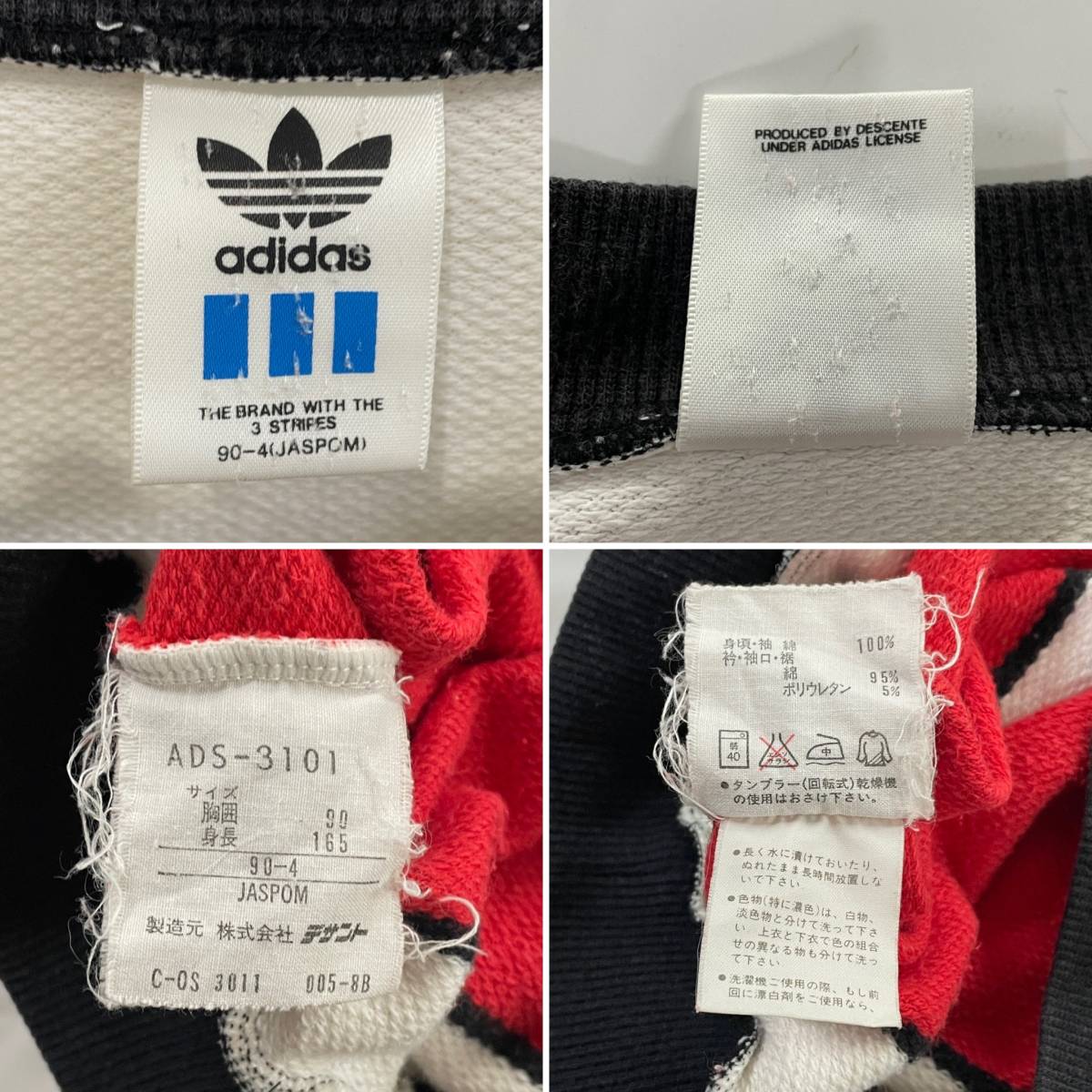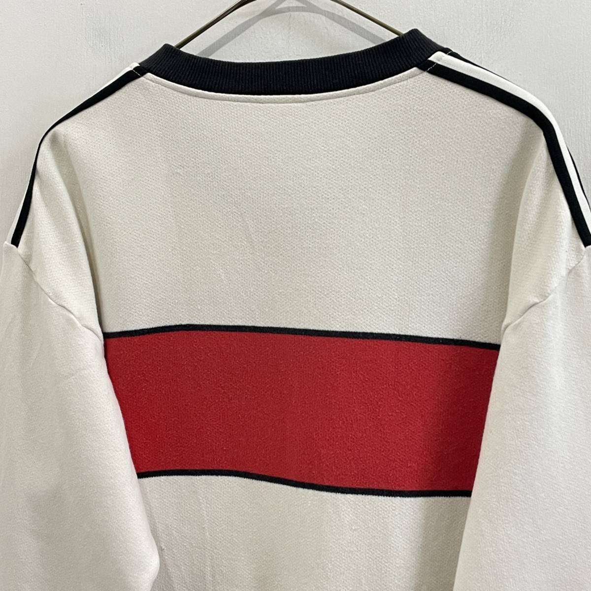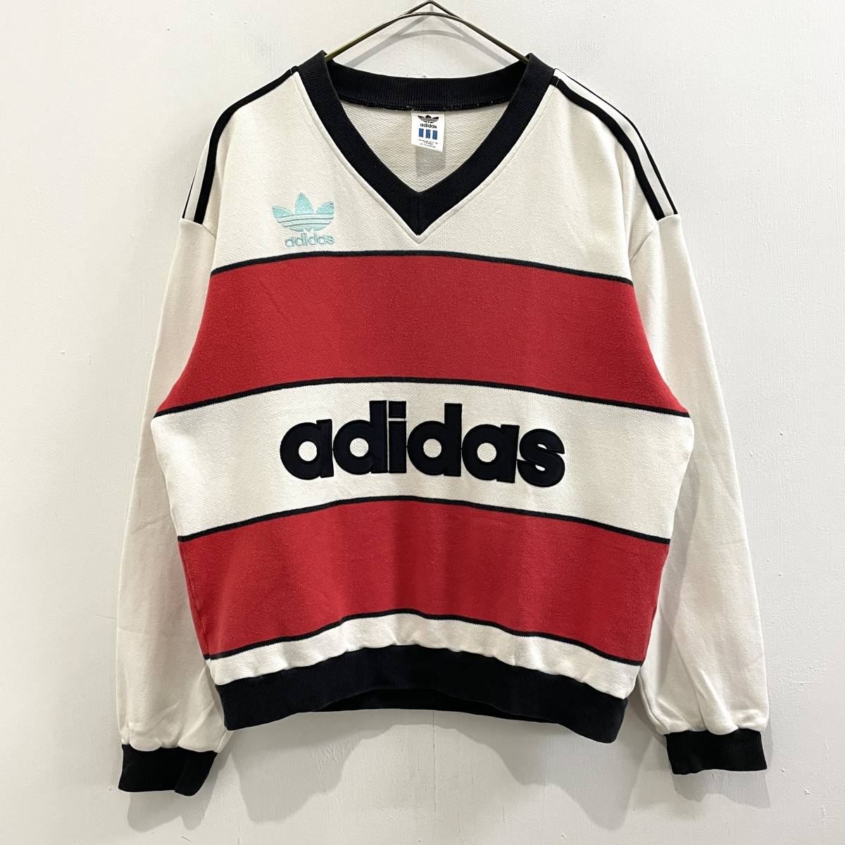 ☆adidas アディダス 80s〜90s VINTAGE デサント期 トレフォイルロゴ刺繍 Vネックスウェット トレーナー サイズM【送料一律/同梱可能】A