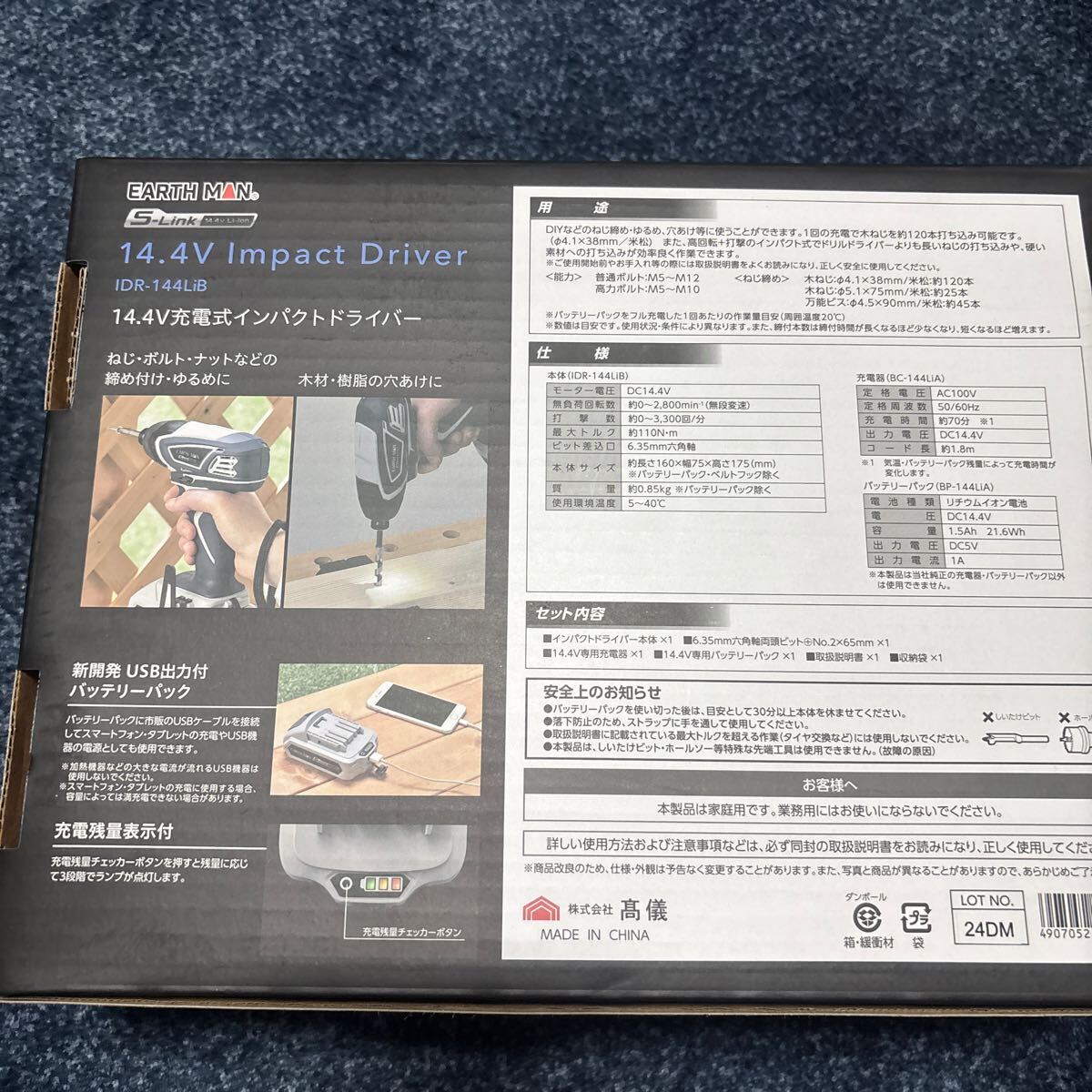 14.4V 充電式インパクトドライバー IDR-144LiB 高儀 (68-0451-49)新品未使用品です。