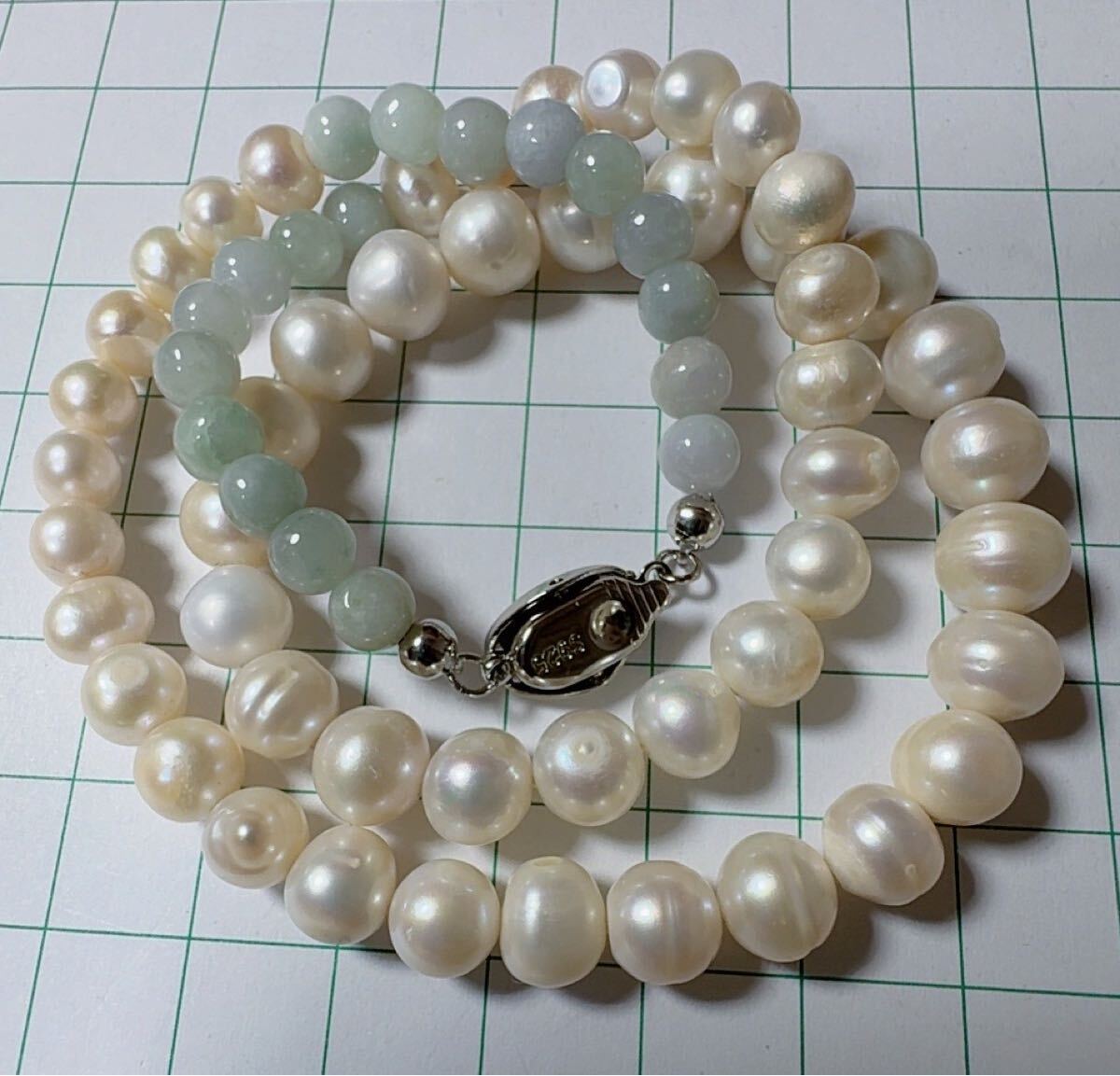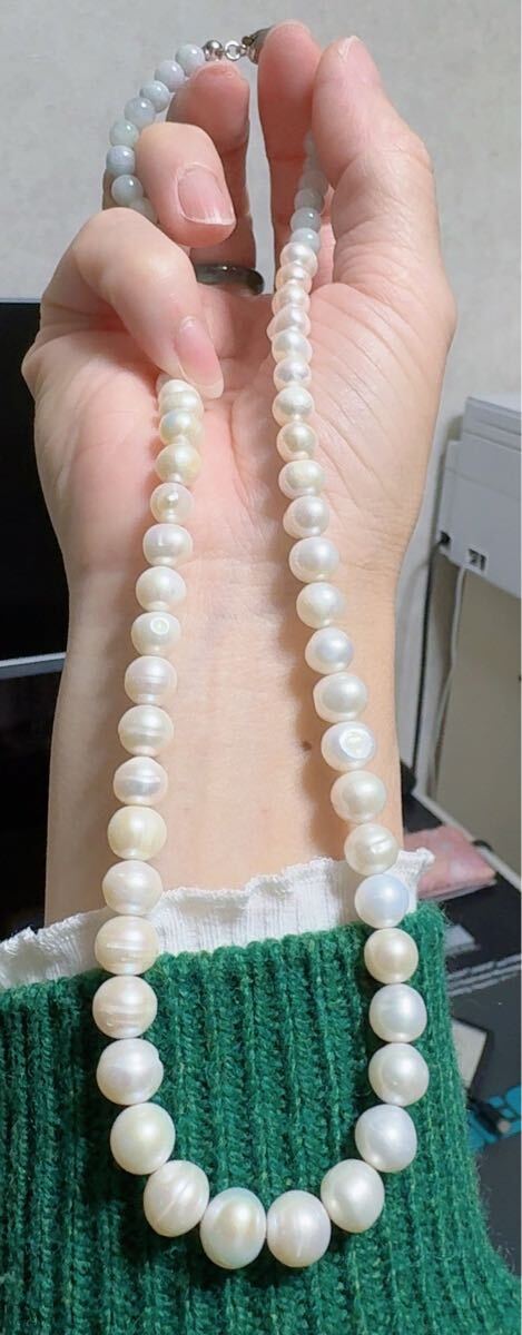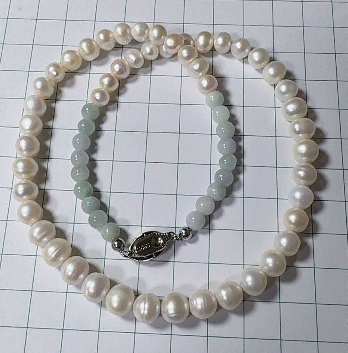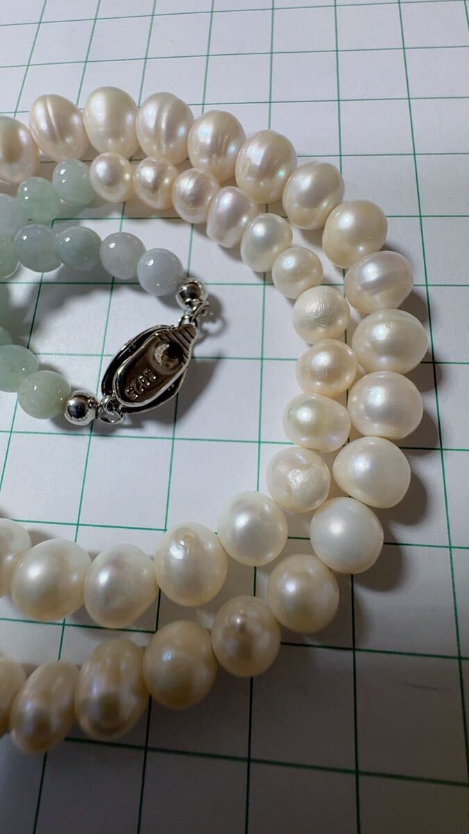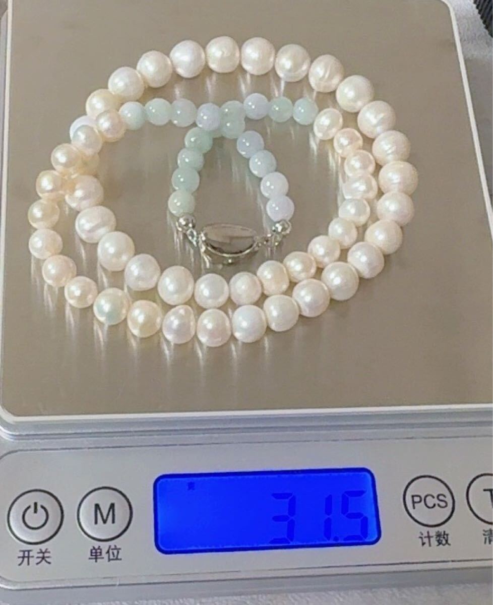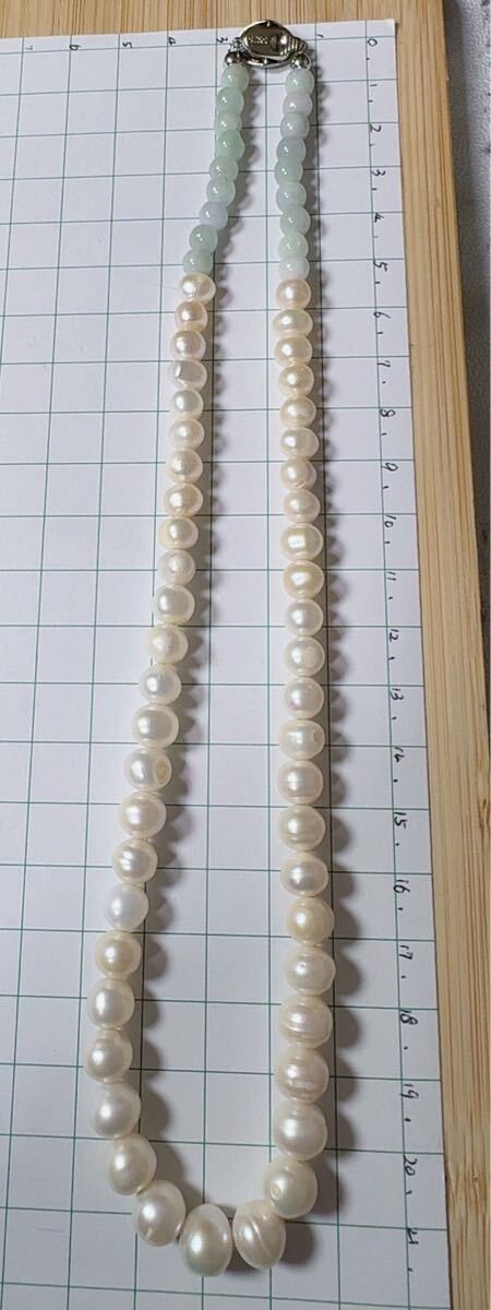 R2M-013天然本翡翠 天然本真珠《本物保証》 SV925 ネックレス長さ約42cm 一点物 魔除け 昇進 成功 風水 金運 財運 幸運 幸福 縁起