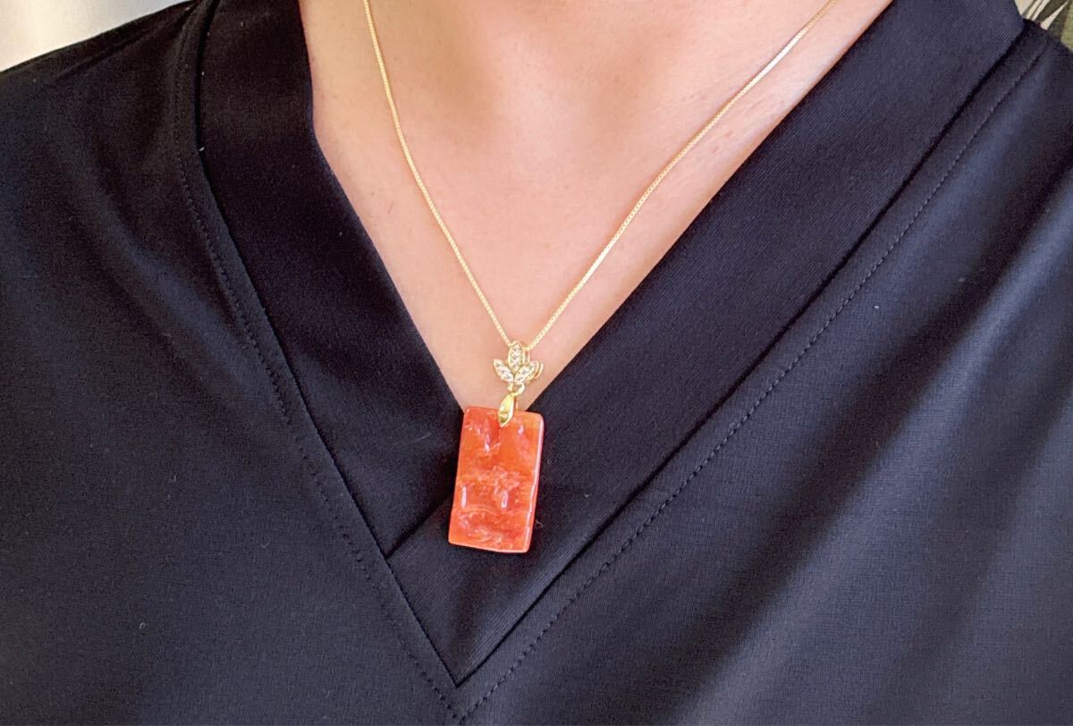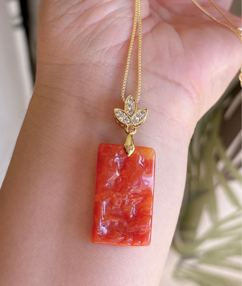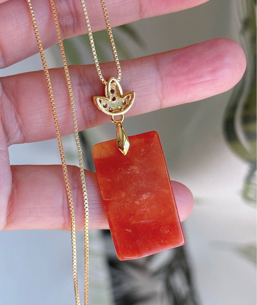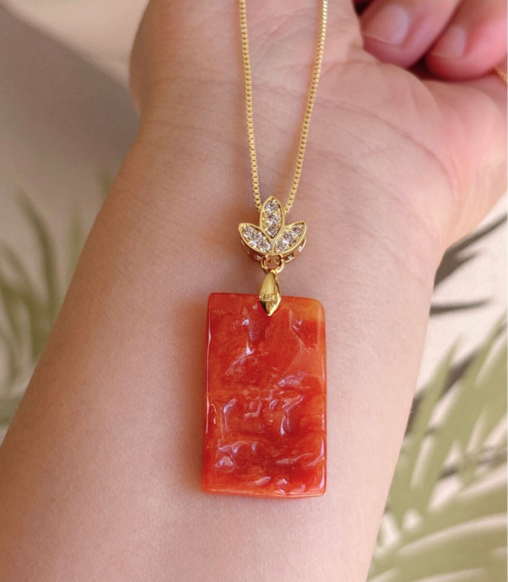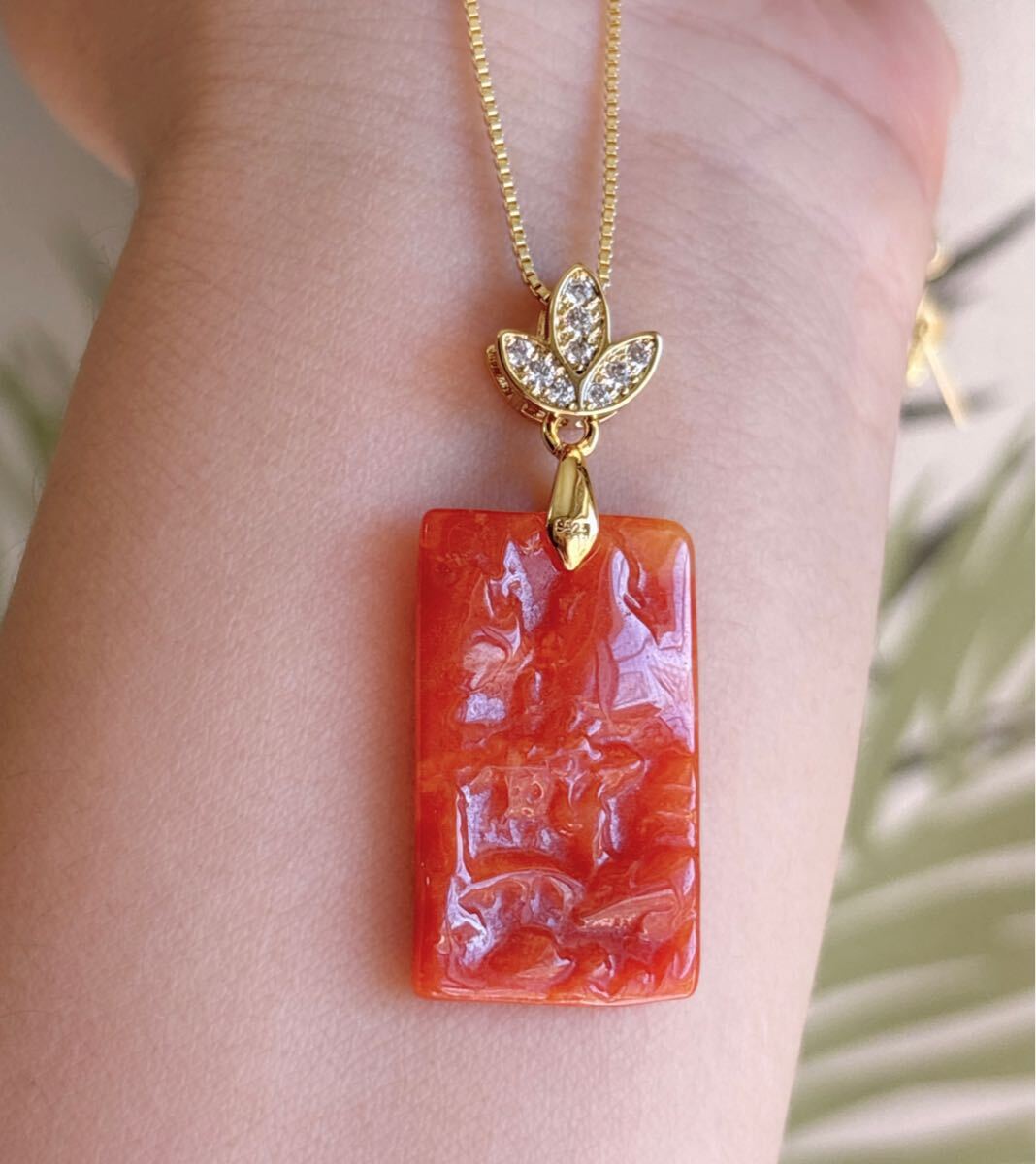 天然石 逸品ミャンマーレッド本翡翠(A)山水札ペンダントのサイズ約:
