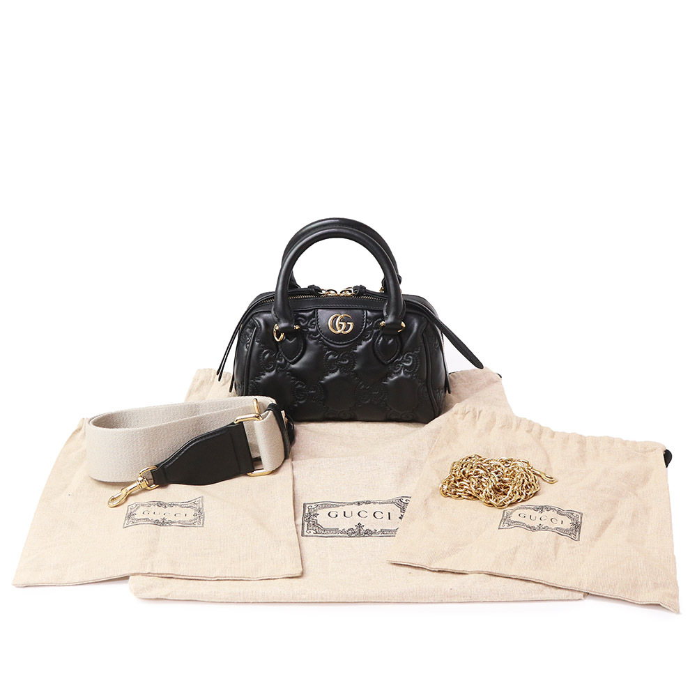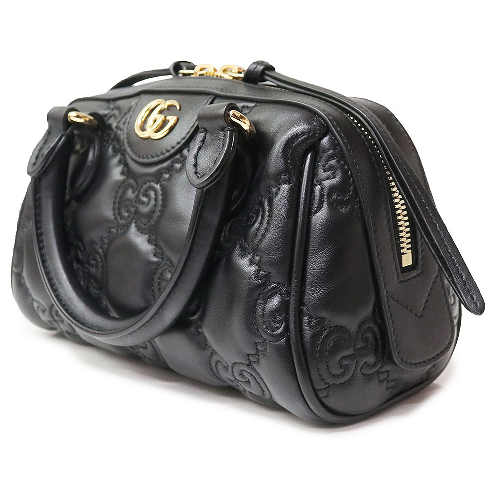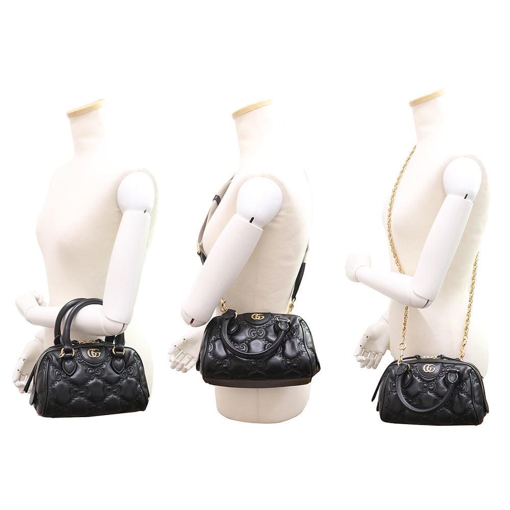 GGマトラッセレザーのショルダーバッグ。コロンとしたフォルムとぷっくりしたキルティングがキュートなデザイン。トップハンドルと2種類のショルダーストラップで3Wayでお使いいただけます。