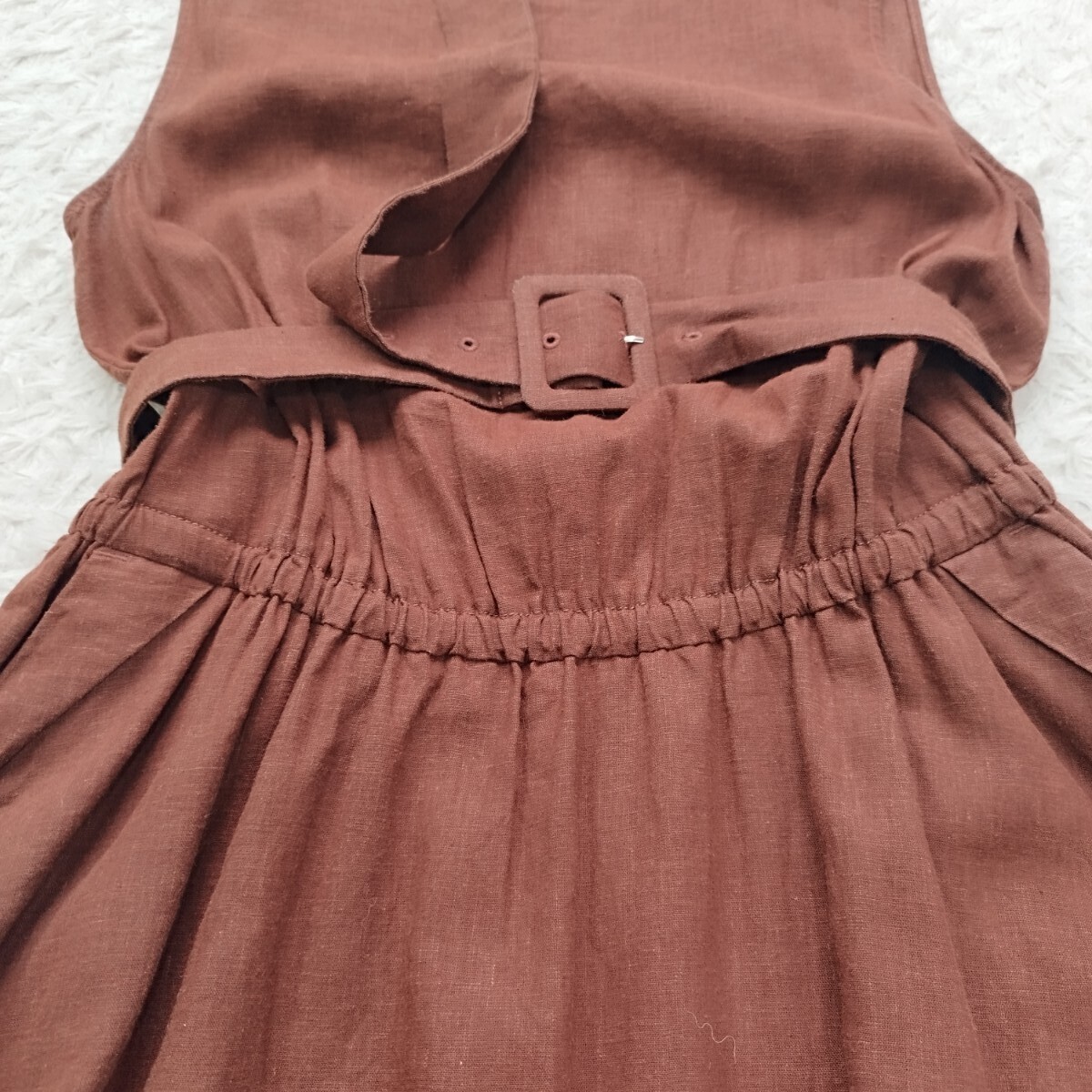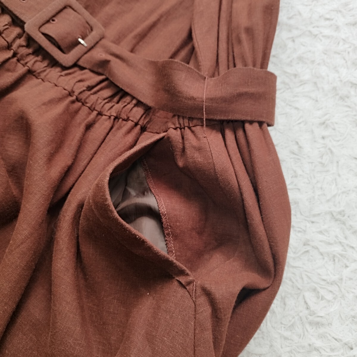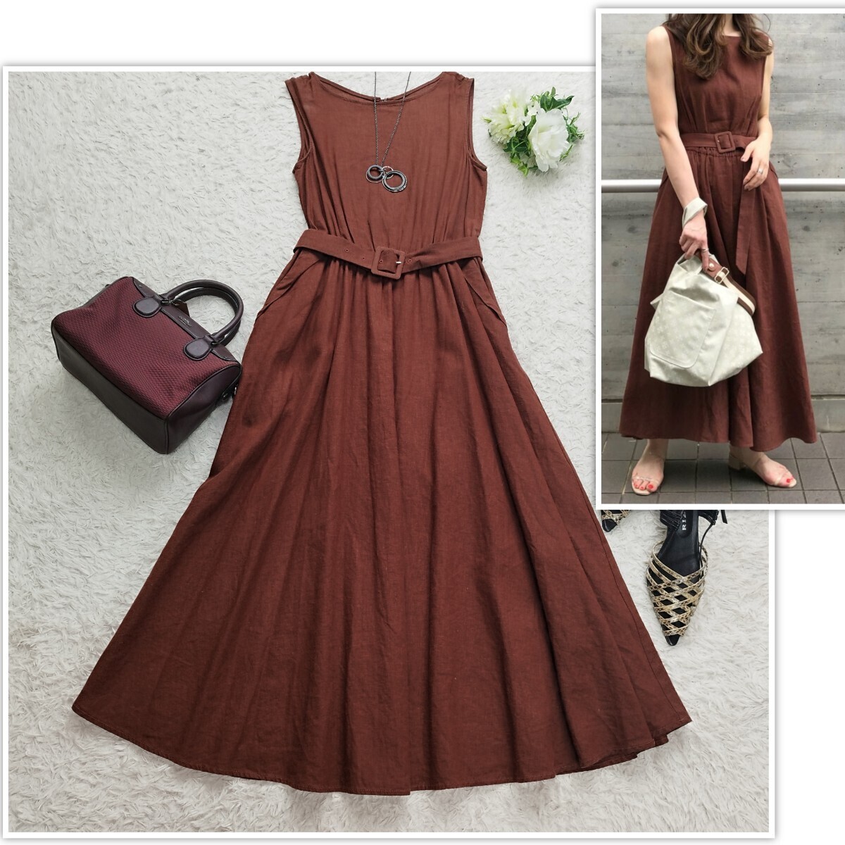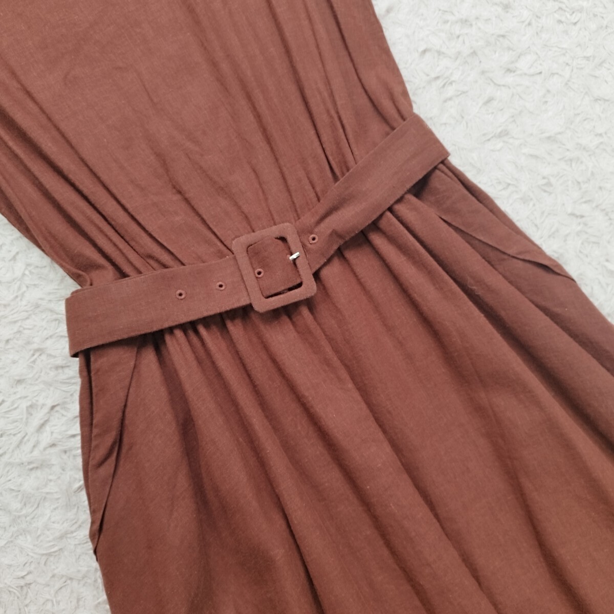 フレアスカートにAラインで女性らしいシルエットです。ベルト付きなのでウエストマークすると細見え効果抜群で、スタイル良く見えます。