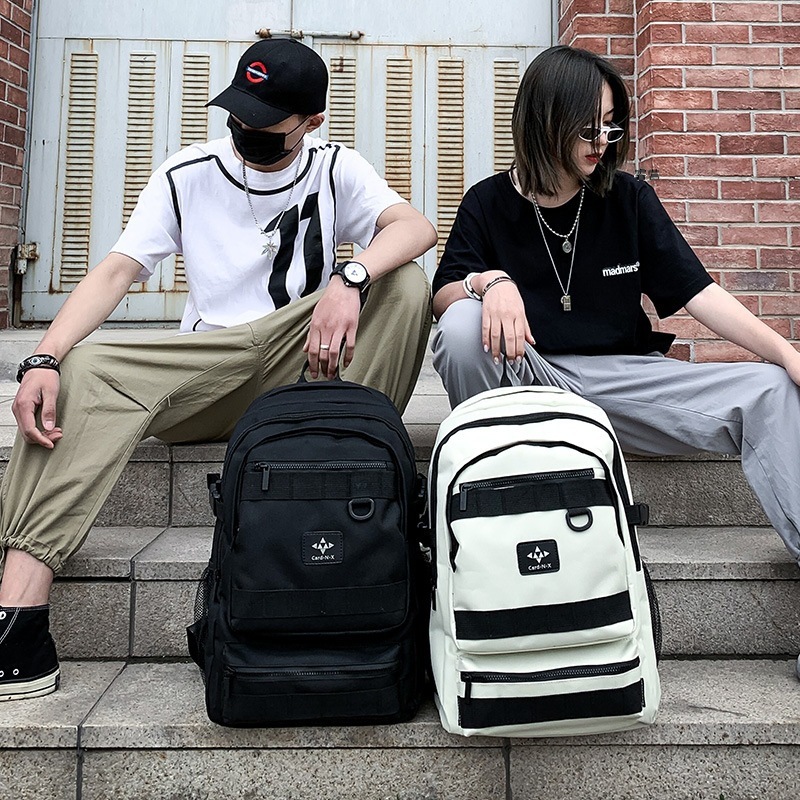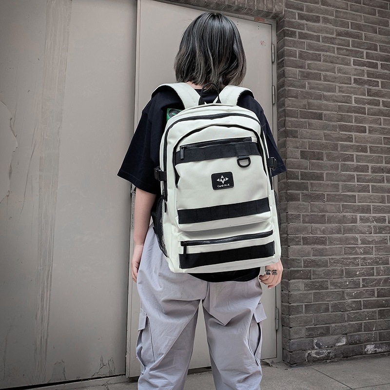 カラー ホワイト ブラックもあります。 サイズ 高さ:約46cm 横:約31cm マチ:約16cm 外側 ZIPポケット×4、サイドポケット×2 内側 仕切り×1 素材 オックスフォード布