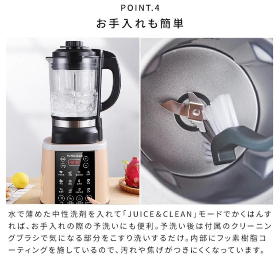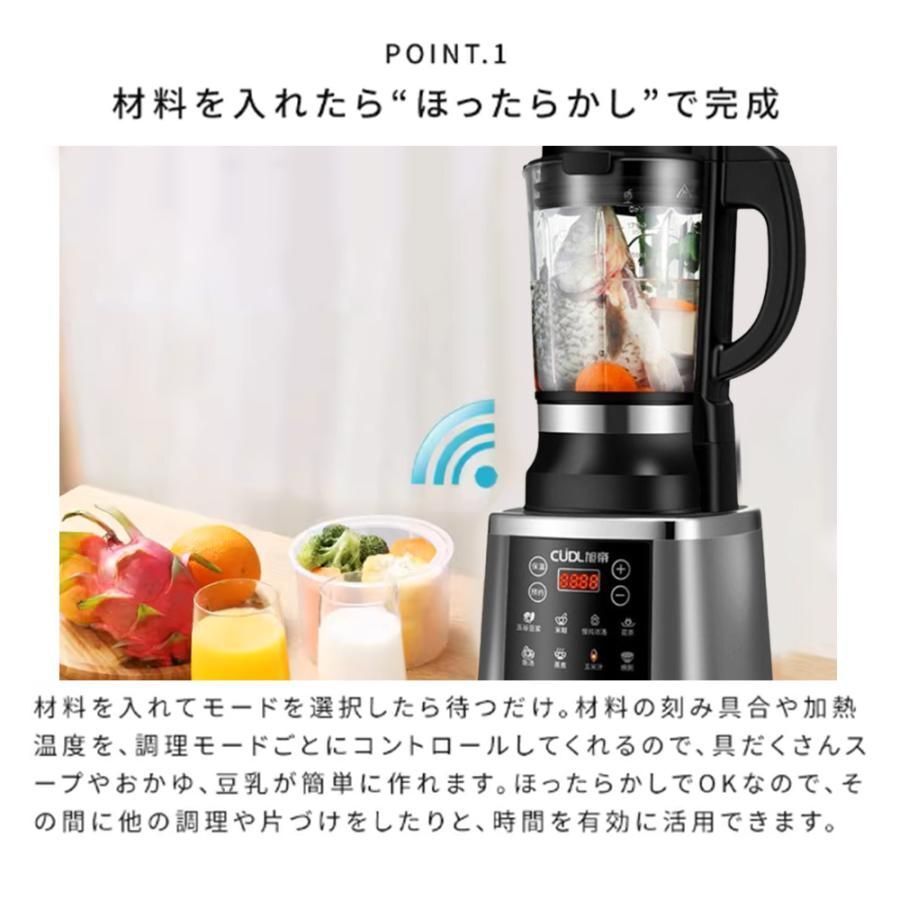 温冷:クッキングミキサーはスムージーやスムージーだけでなく、加熱機能があり、フルーツや野菜ジュース、カボチャのソース、ハーブティーやフルーツティー、豆乳などを作ることができます。自動洗浄対応です