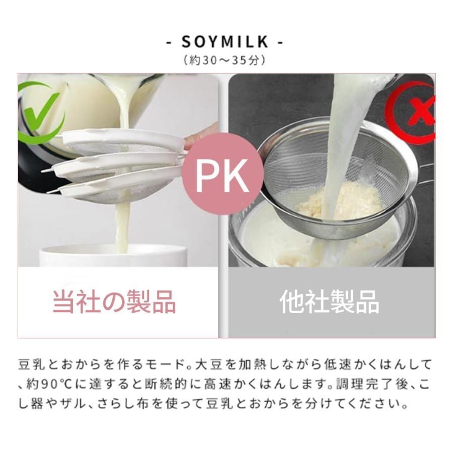 【多機能性】 全自動豆乳メーカー、ジューサー、スムージーメーカーは、食品や飲料を混ぜたりかき混ぜたりするだけでなく、氷やナッツ、ドライフルーツなどより硬い材料を砕いたりかき混ぜたりすることもできます。