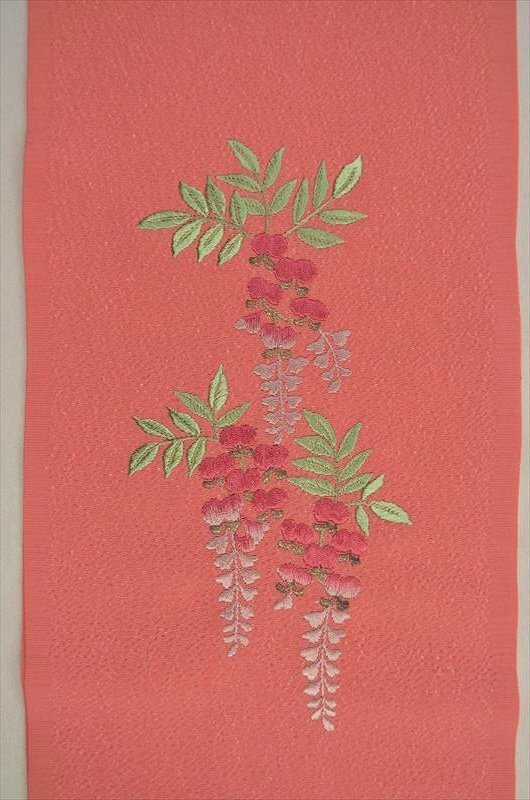 ▲まいど家 X4-04-99 藤の花模様 刺繍 ちりめん 洗える半衿 ポリエステル 未使用品