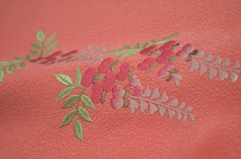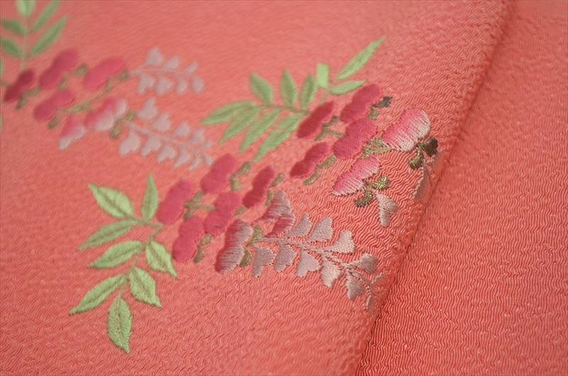 ちりめん地に藤の花模様の刺繍の半衿です。