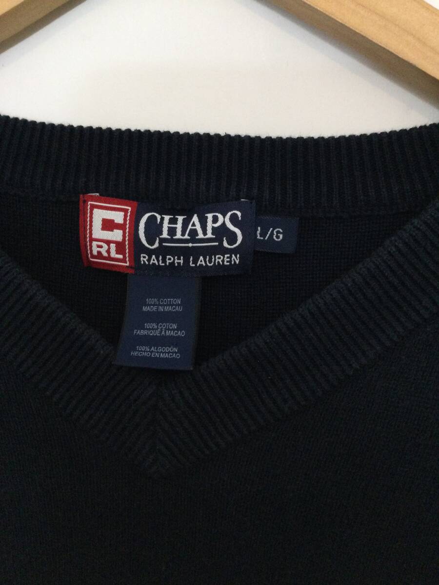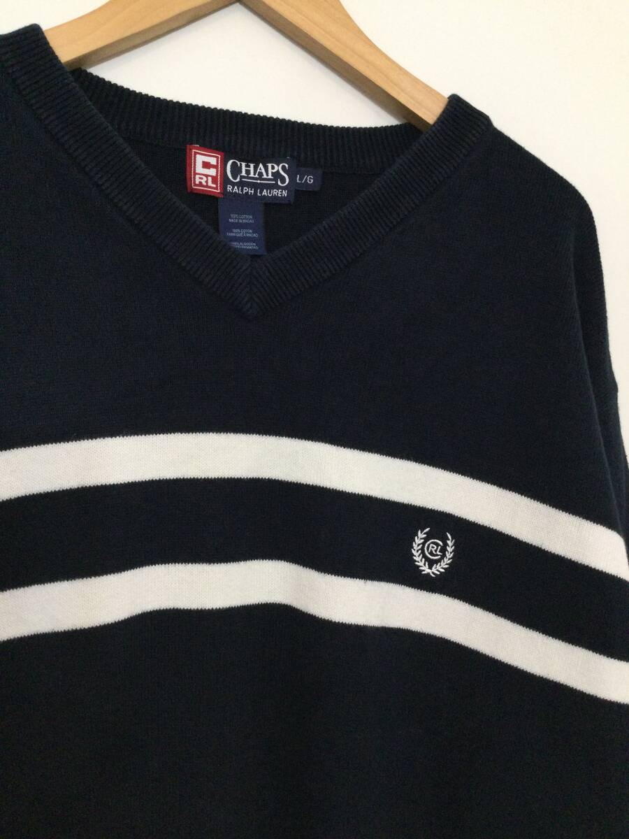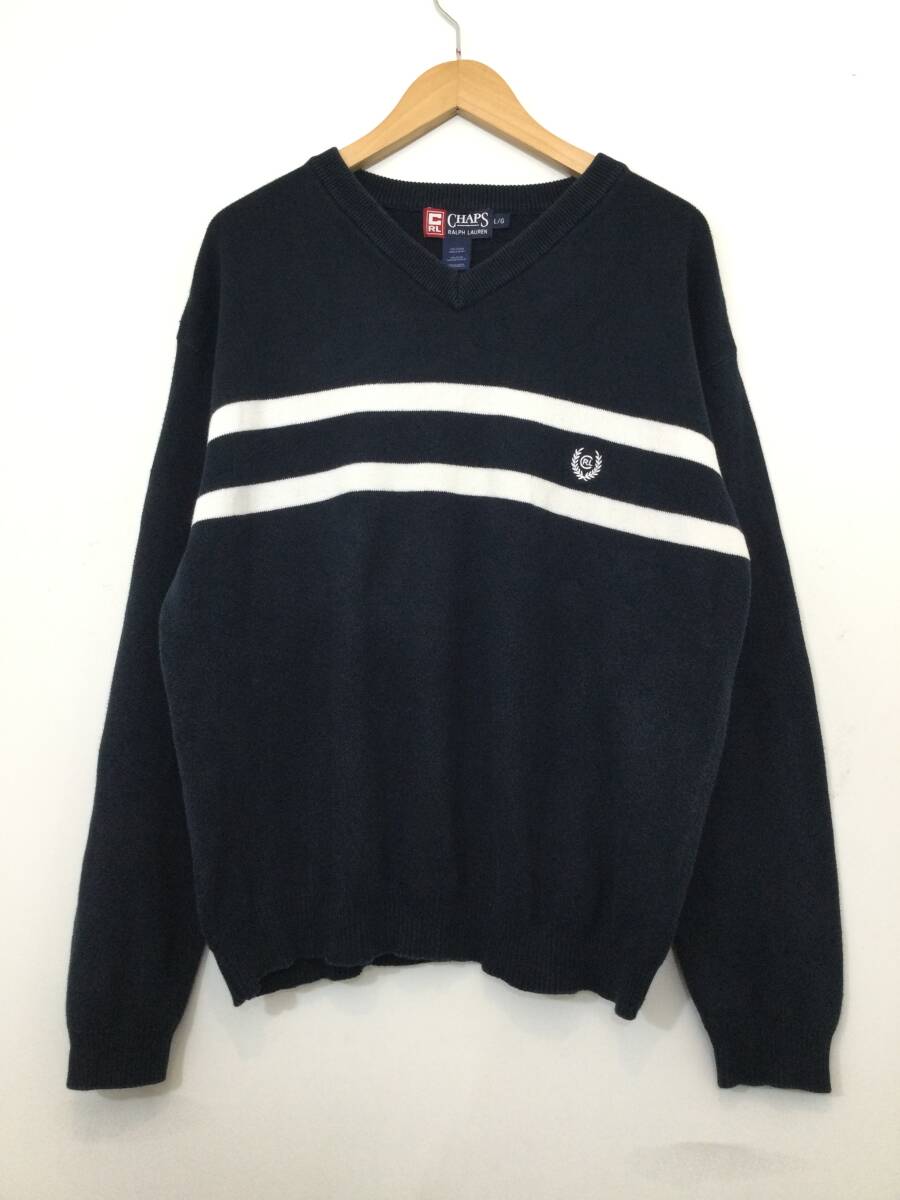 CHAPS RALPH LAUREN チャップス ラルフローレン コットンニット セーター Vネック ニット 胸刺繍 メンズL 大きめ 良品綺麗
