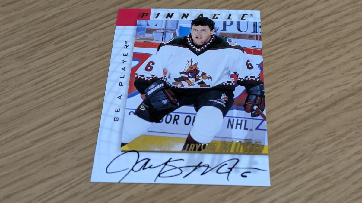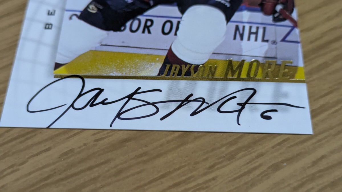 そのJayson More 直筆サインカード。カードはNHLカードで人気の1パックに1枚直筆サインカードが出現するBE A PLAYER カードの直筆サインカードです。