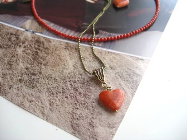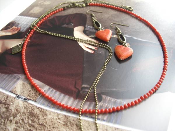 春色・クローゼット・・シリーズです♪赤いハート・・深い赤の珊瑚のネックレス2点とピアスの3点セットです♪スポンジ珊瑚のハートや小粒の珊瑚にデザインチェーンや座金を合わせてキュートな表情です♪3ミリの珊瑚の丸玉はシンプルで合わせやすいデザインです♪長さは42センチ+アジャスター10センチで最長52センチ位です♪3重にしてブレスにされても素敵です♪15ミリのハートの珊瑚には華奢なボールチェーンとシックな座金を合わせました♪長さは70センチ+アジャスター10センチで最長80センチ位です♪同じ15ミリのハートの珊瑚のピアスにはデザインリングを合わせました♪長さは全長6・5センチ位です♪イヤリングにも変更出来ます♪それぞれ単品も出品しています♪シンプルで飽きのこないいつまでも着けられるデザインを考えて作りました!ハン ドメイドをご理解頂いてノークレーム、ノーリターンでお願いします