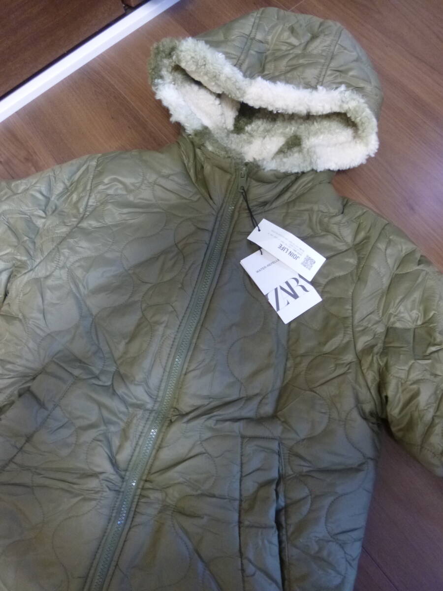ZARA ■新品 タグ付き■ザラ コート ジャケット 13-14 歳 (164 ㎝) カーキ キルティングジャンパー ロング厚手 男女兼用