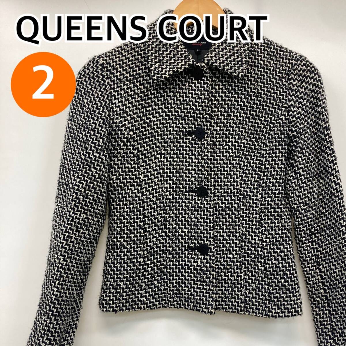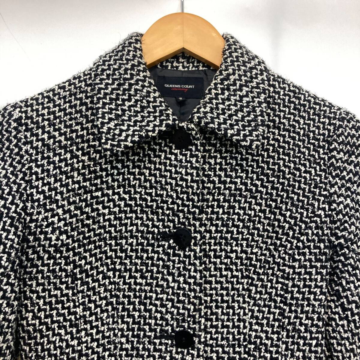 QUEENS COURT クイーンズコート コート アウター ジャケット レディース ブラック ホワイト 日本製 サイズ2【CT615】