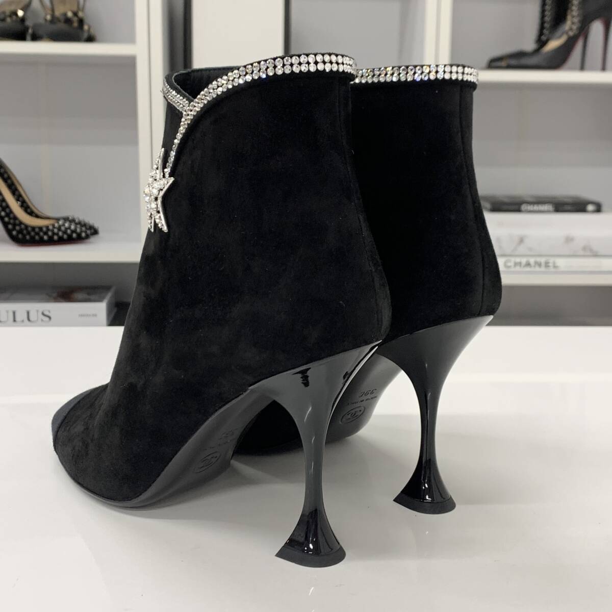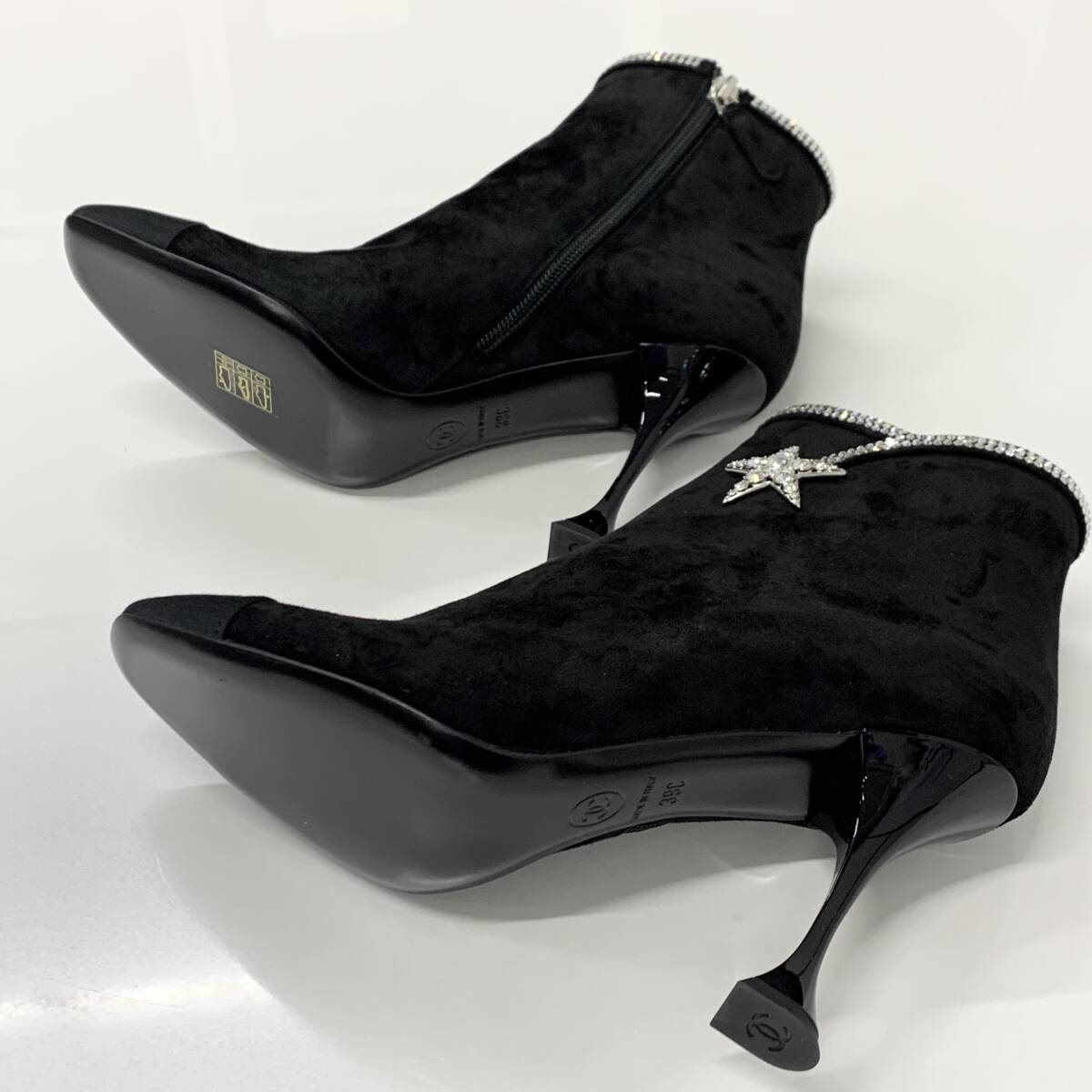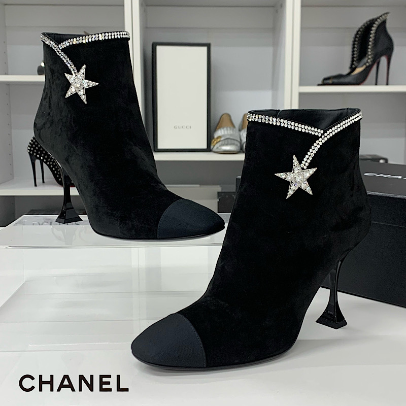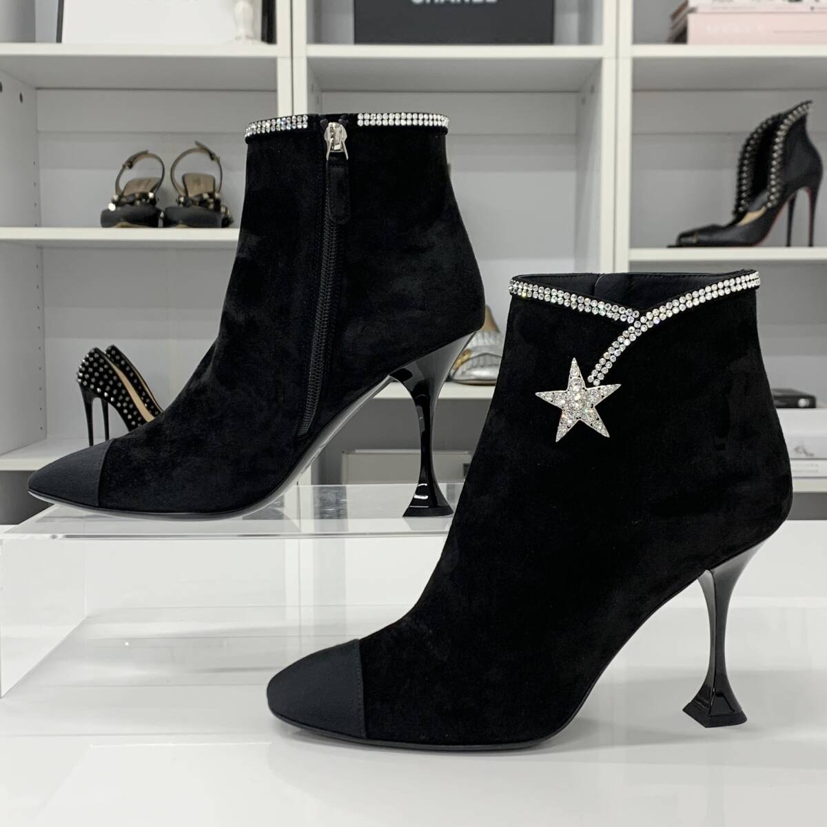 シャネル スエード ラインストーン スター ショートブーツ ブラック