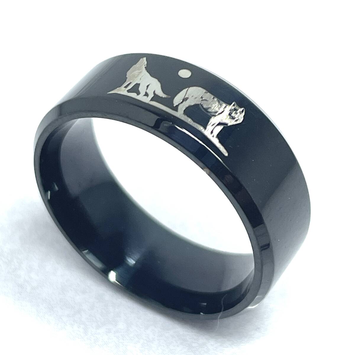 指輪リング ブラック ウルフ ムーン オニキス 漆黒 スタイリッシュ メンズギフト 月と狼 ダークファンタジー ミステリアス 夜空 W447-B9