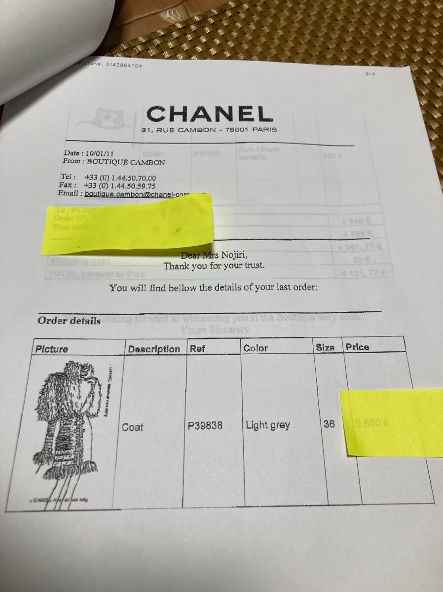 パリから取り寄せた時の書類、レシートが出てきたので追像いたします。