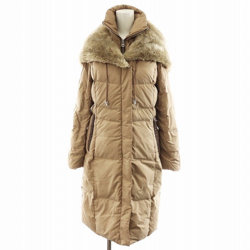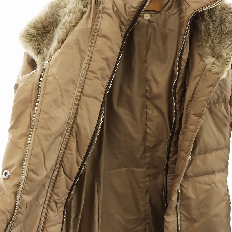 コールハーン COLE HAAN ダウンコート ロング丈 フード ファー アウター XS ベージュ /AN29 レディース