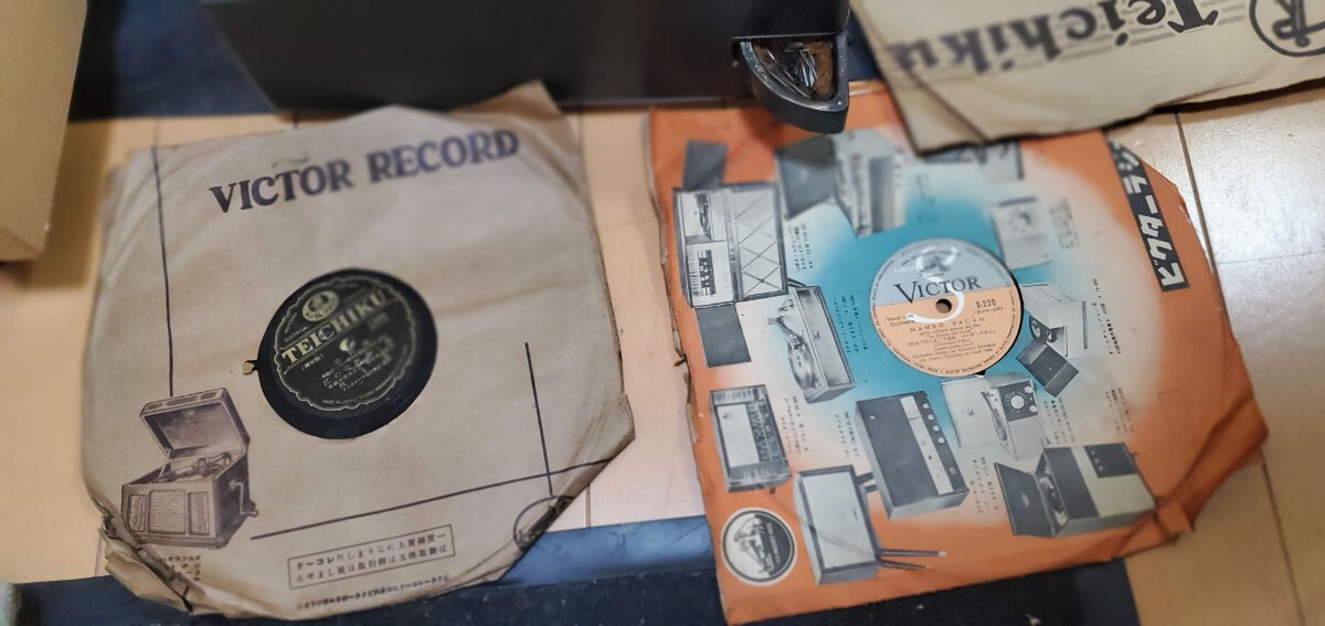 アンティーク Columbia 蓄音機 昭和レトロ 針 レコード4枚付き