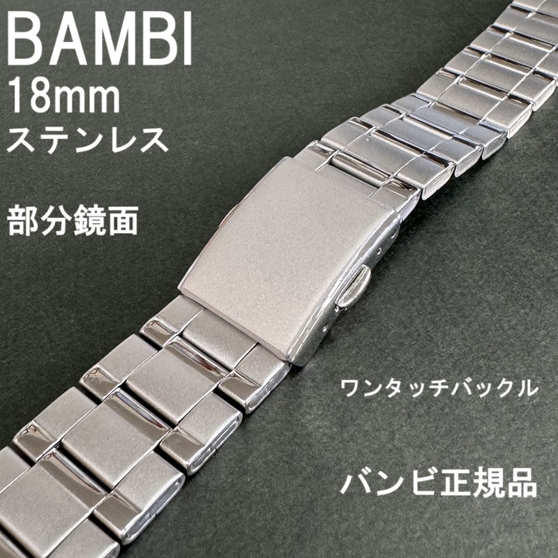 送料無料★特価 新品★BAMBI 時計バンド 18mm ステンレスベルト 部分鏡面 ワンタッチ中留 バンビ正規品 定価税込4,950円 WVA-M480対応