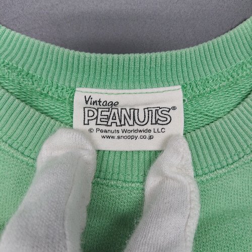 ◇ Vintage PEANUTS チャーリーブラウン コットン生地 クルーネック 長袖 スウェット サイズ110 グリーン レディース E
