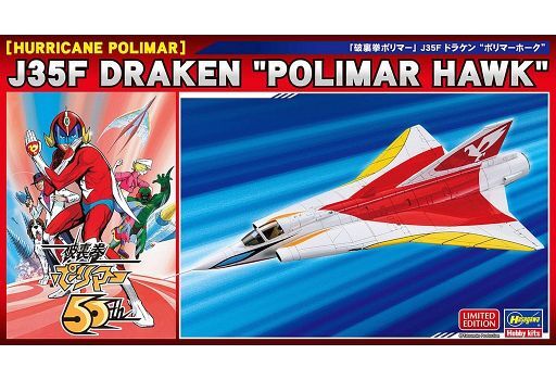 商品解説■2024年に50周年を迎えるTVアニメ「破裏拳ポリマー」より、破裏拳ポリマーの飛行形態である`ポリマーホーク`のカラーリングを施したJ35Fドラケンをキット化します!