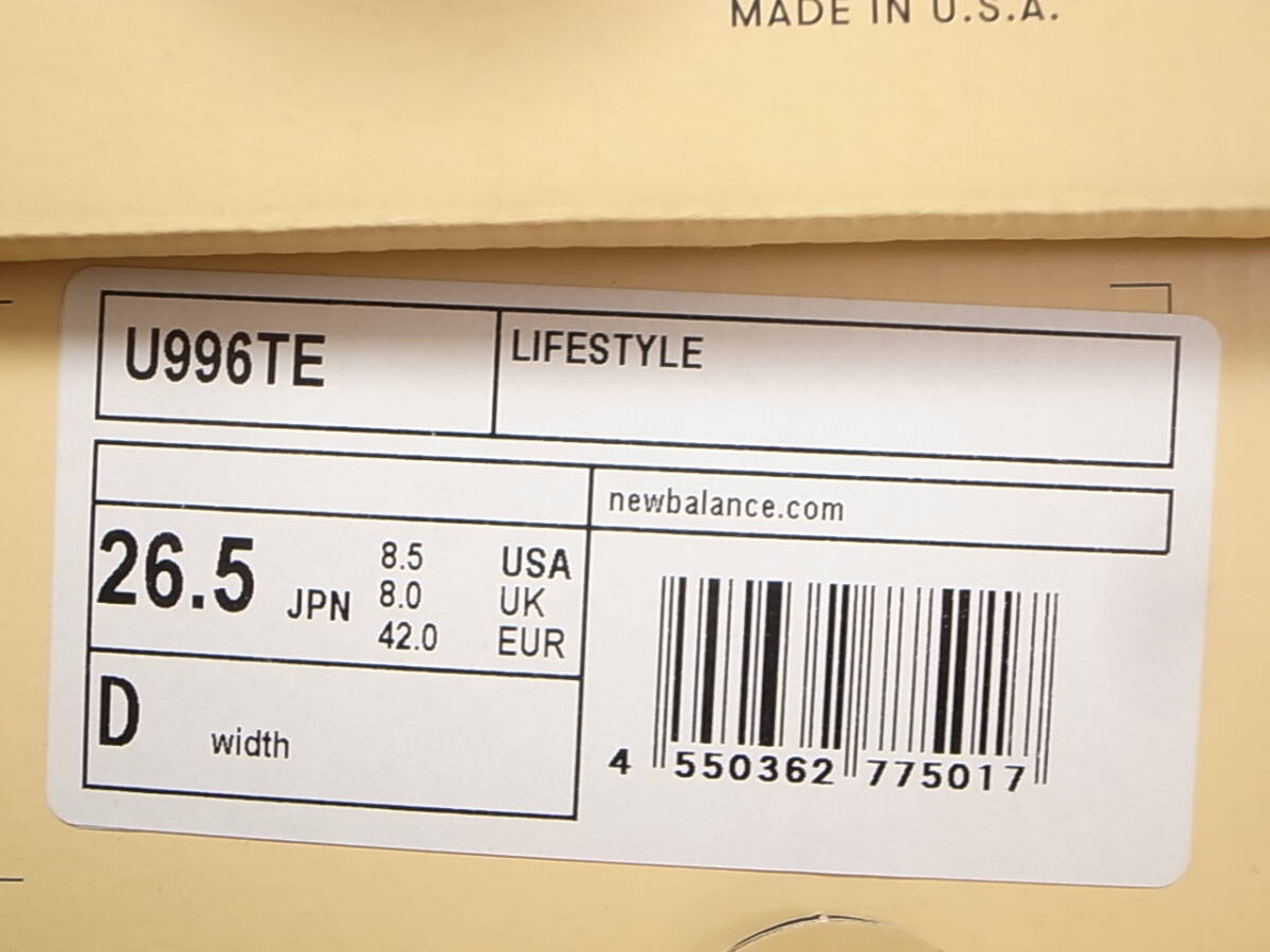 【送料無料 即決】NEW BALANCE USA製 U996TE GREY DAY 26.5cm US8.5新品グレーxネイビー灰色GRAY NAVYヘアリースウェード 米国製アメリカ製