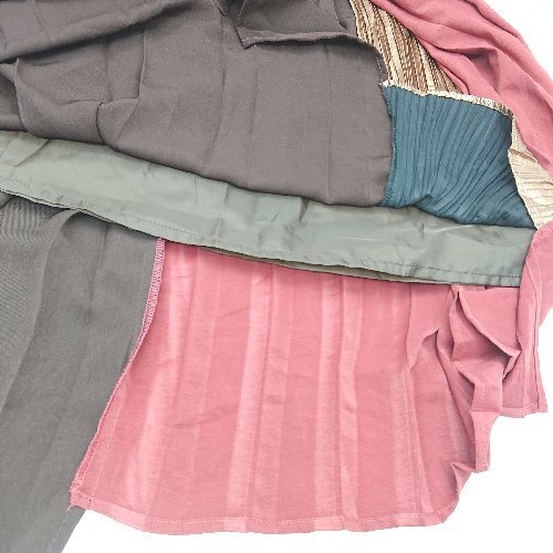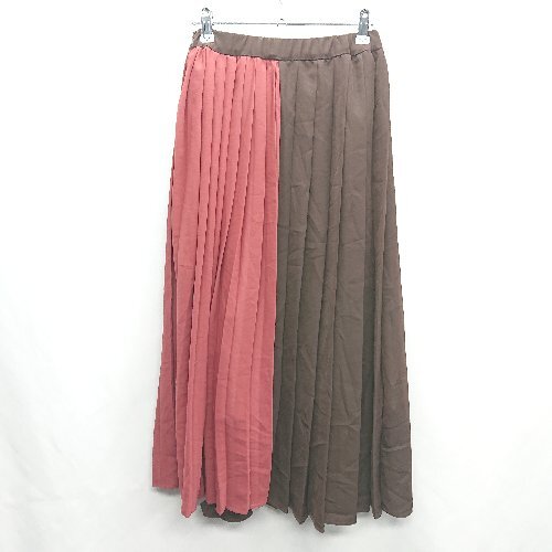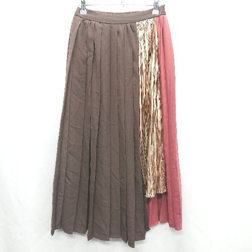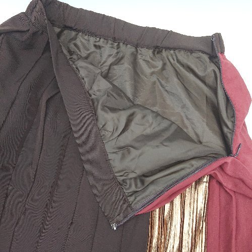 ◇ Θ MURUA ムルーア 3色切替 膝下 プリーツ フレアー スカート サイズF ブラウン ワインレッド ゴールド レディース E