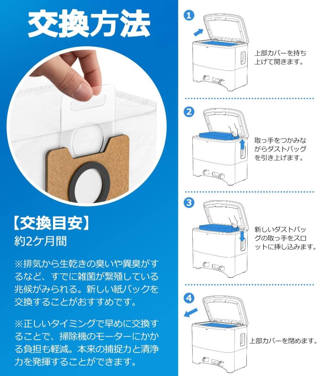 【交換目安】交換用紙パックには最大60日分ごみを貯めることができるんで、捨てる頻度を低減できます。また、目に見えない花粉やカビをキャッチすることや、ホコリが舞い散りにくいことも魅力です。