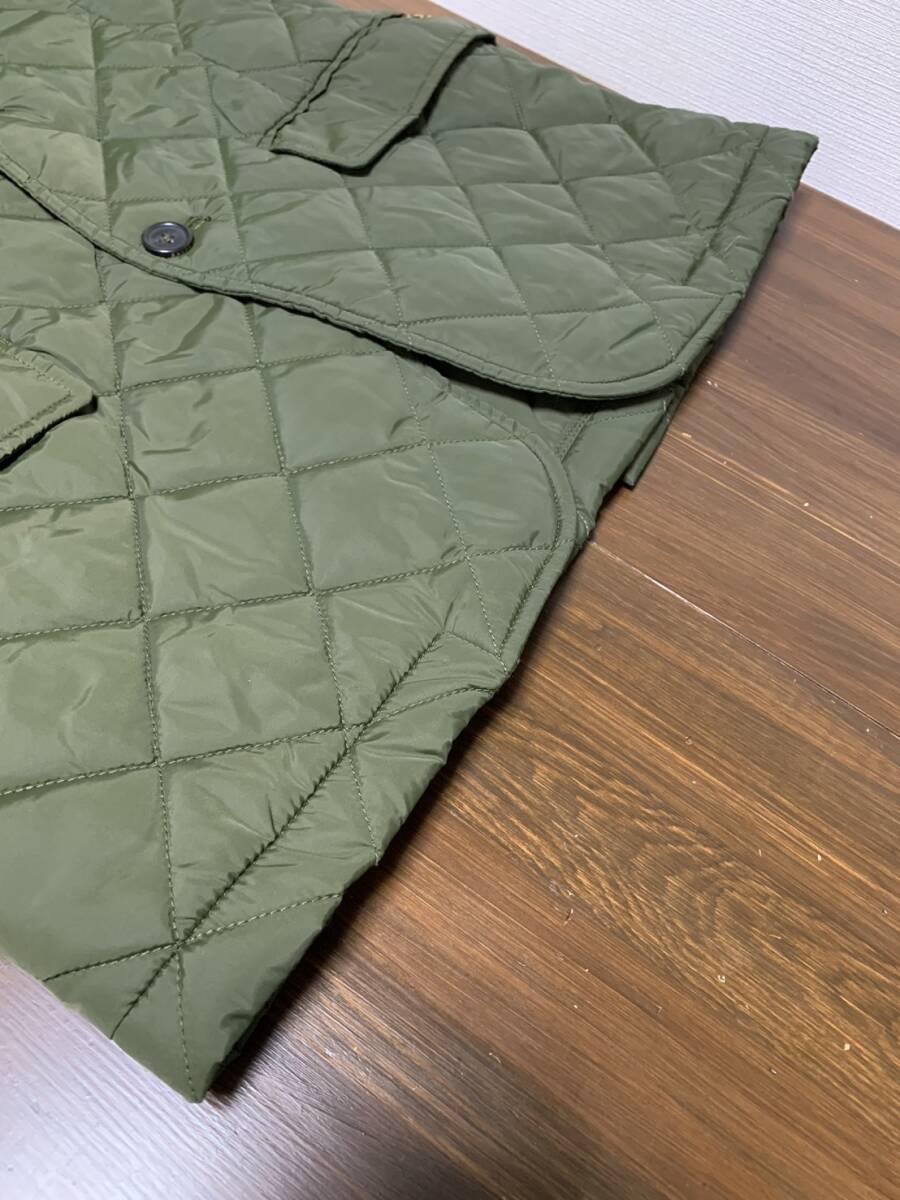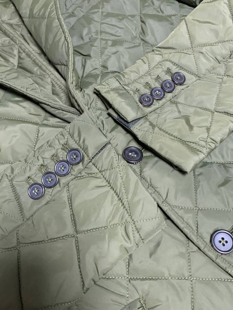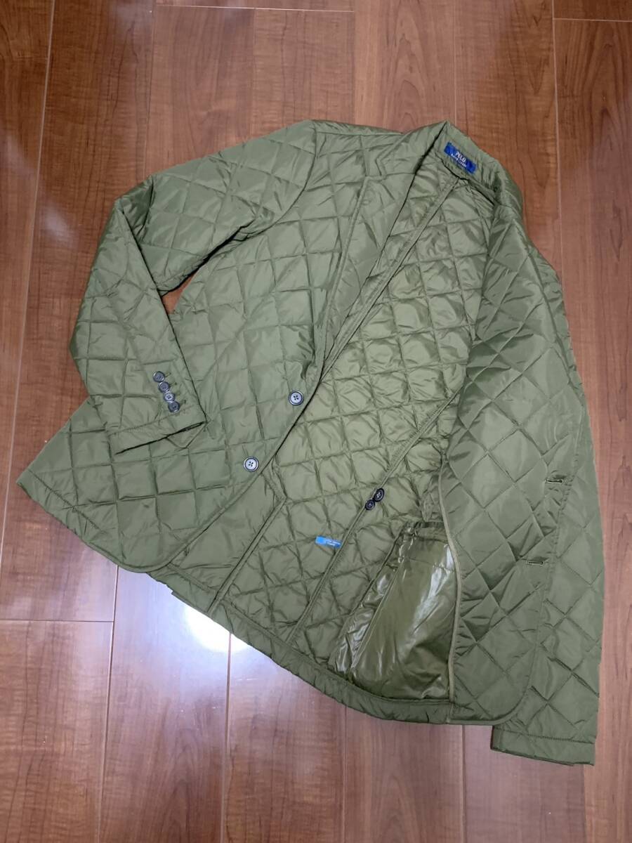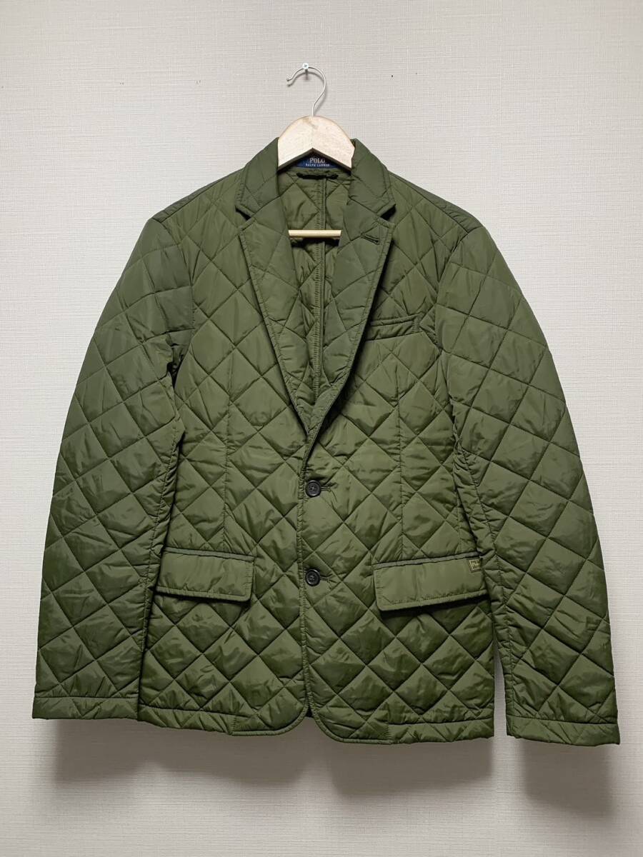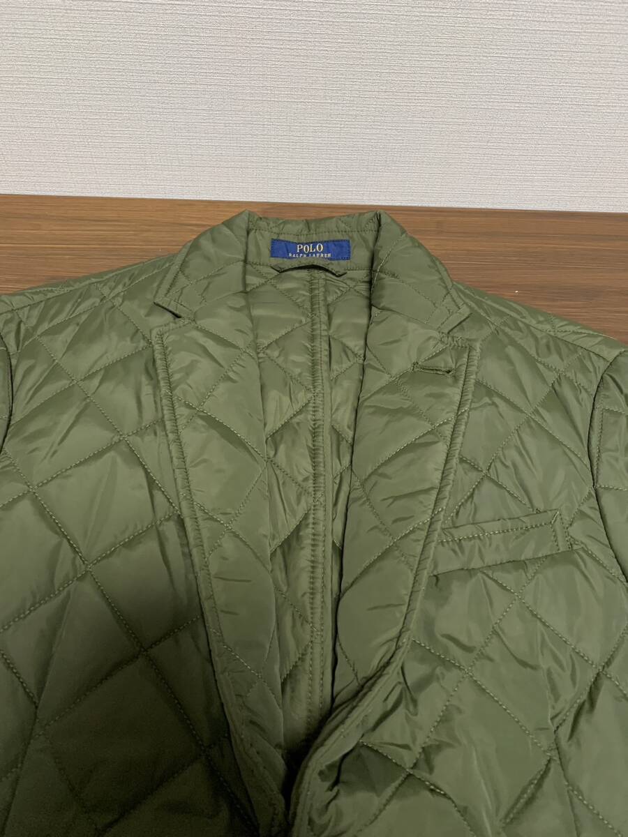 美品☆[POLO RALPH LAUREN] レザートリム キルティングハーフコート パファージャケット テーラード S グリーン ポロ ラルフローレン