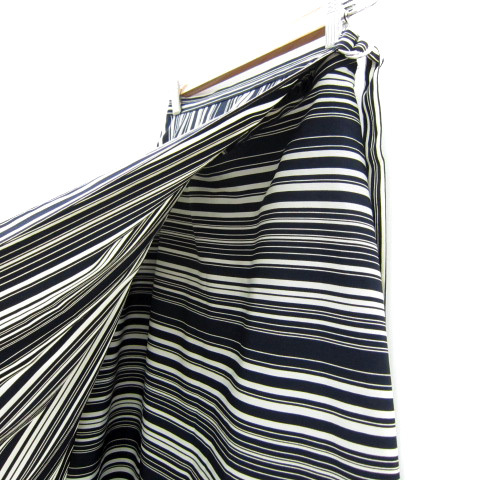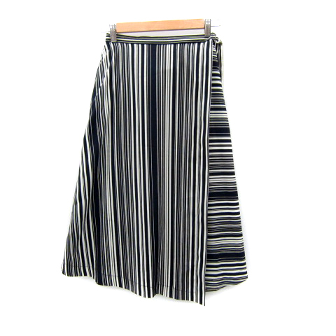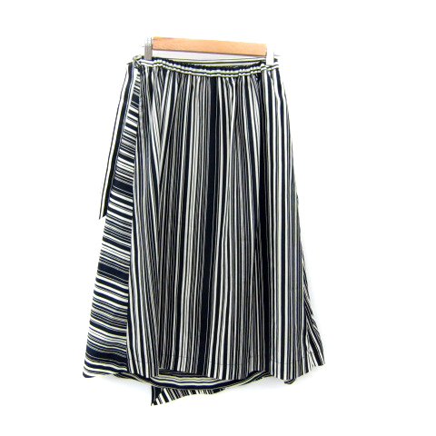 ブージュルード Bou Jeloud フレアスカート ラップスカート風 ロング丈 ストライプ柄 38 M 紺 ネイビー 白 ホワイト /SY14 レディース