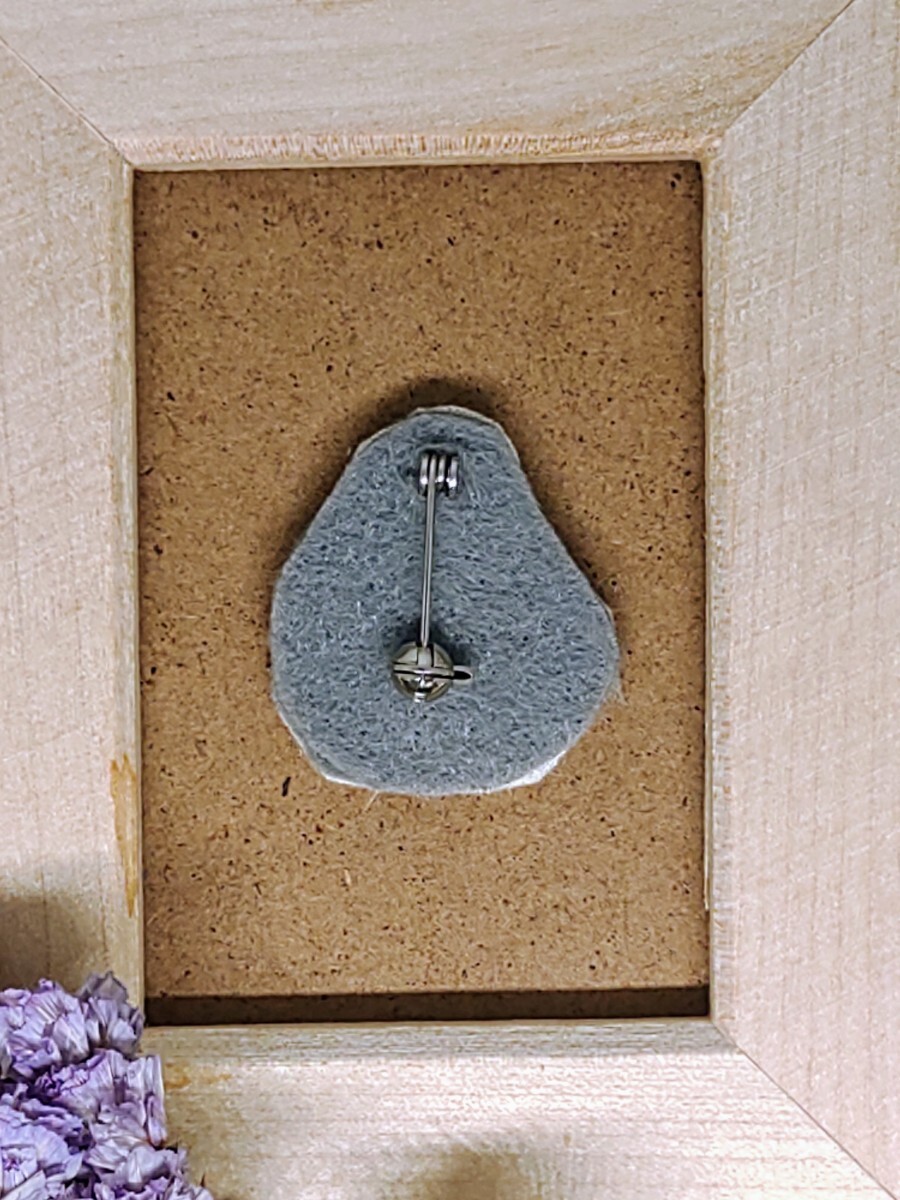 先の尖ったブローチピンを使用しております。お取り扱いには十分ご注意ください。刺繍作品は繊細ですので、洗濯したり引っ張ったり曲げたりしないよう、ご留意ください。