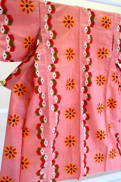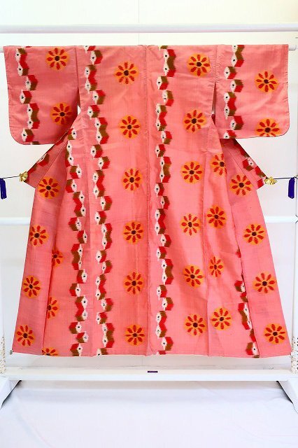 【着物フィ】美品 アンティーク 銘仙 小紋 錆ピンク 花文 身丈144cm お洒落 大正ロマン レトロ kimono 仕立上がり正絹 17270 |