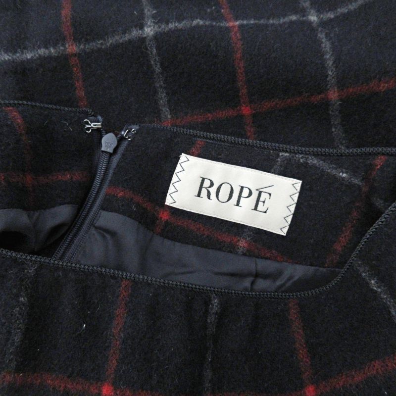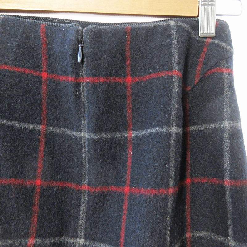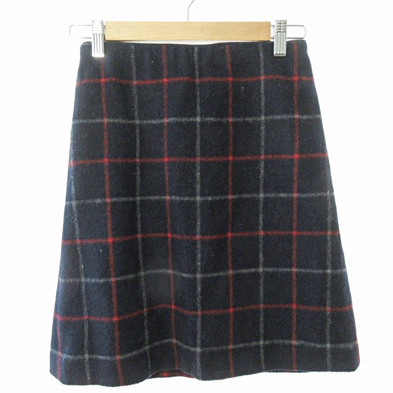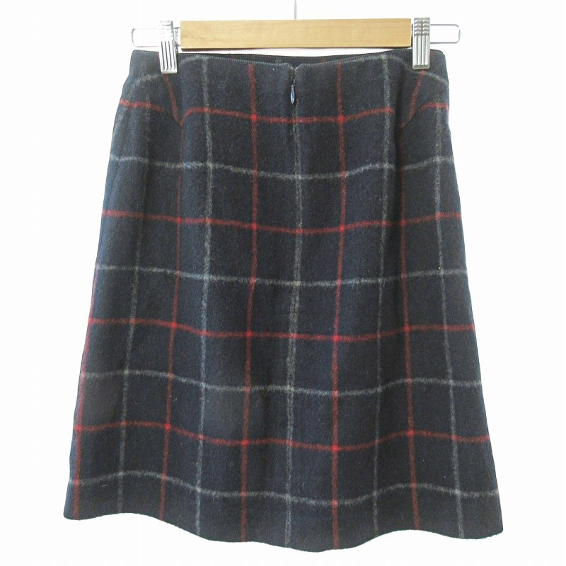 ロペ ROPE 美品 スカート 膝丈 チェック柄 ウール 36 紺 ネイビー 1122 ■GY09 レディース