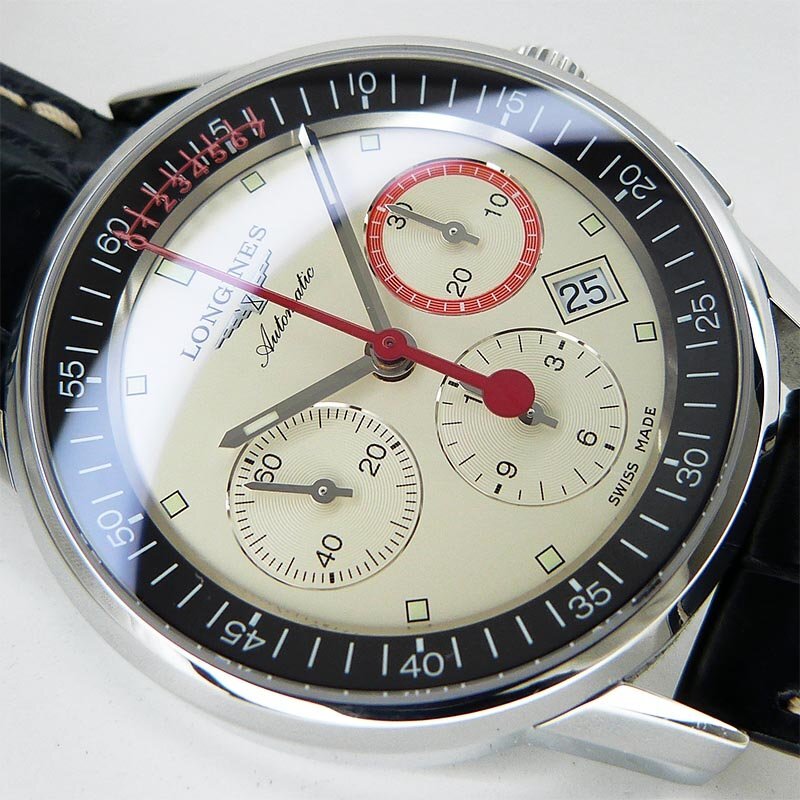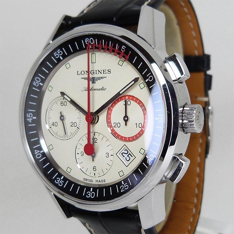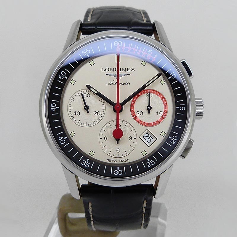 中古美品ロンジン【LONGINES】 L4.754.4.72.4 ヘリテージ コラムホイール クロノグラフ レコード アイボリー
