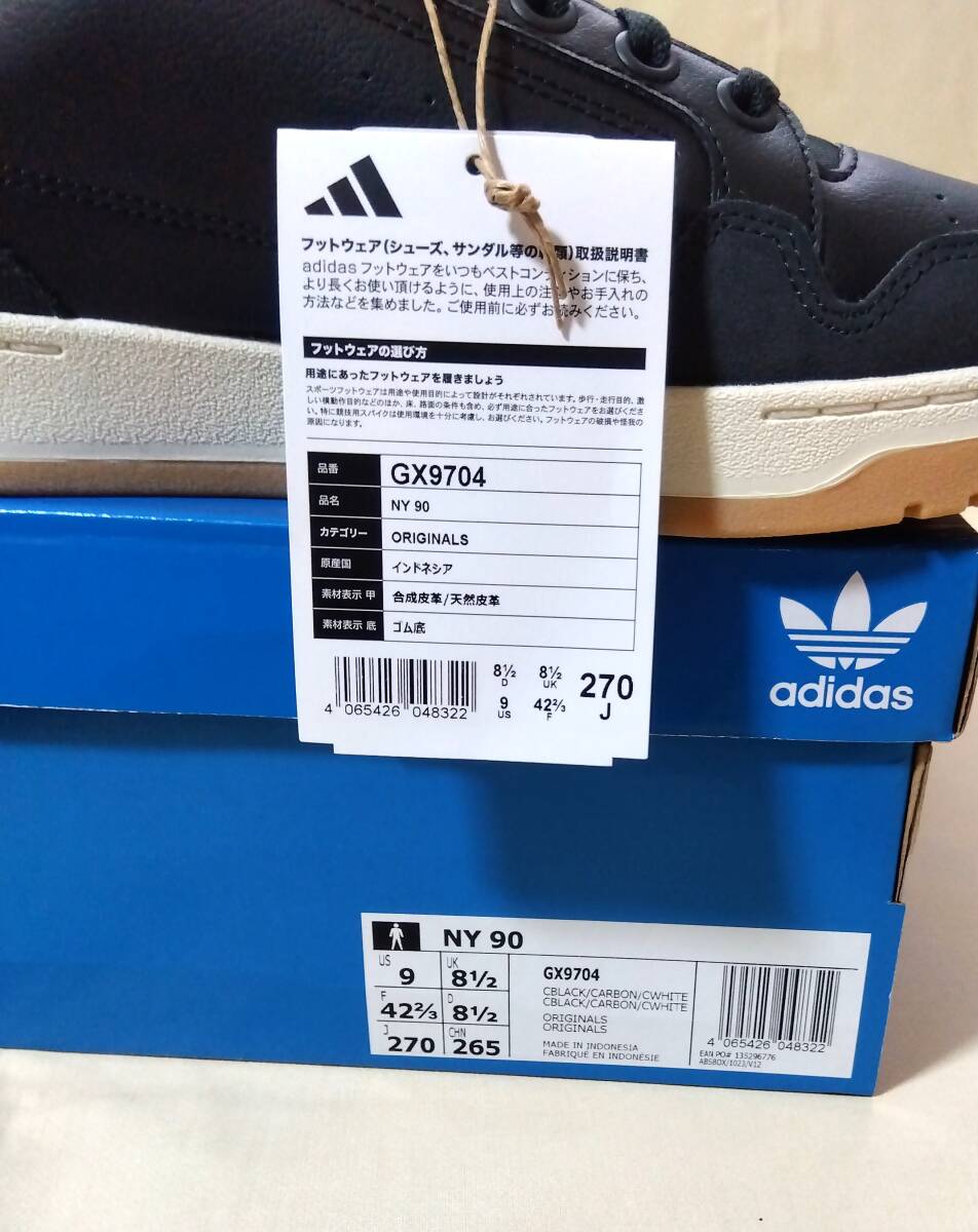 外箱付き 未使用 NY90 アディダスオリジナルス 2024年 GX9704 トレフォイル 合成皮革 天然皮革 adidas originals スニーカー 27cm 黒 7299