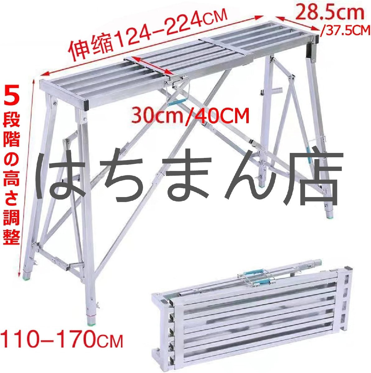 足場台 四脚アジャスト式立ち馬 伸縮 長さ調節可能 5段高さ調節可能 脚立 洗車台 作業台 伸縮124-224cm(高い110~170cm) 幅40cm