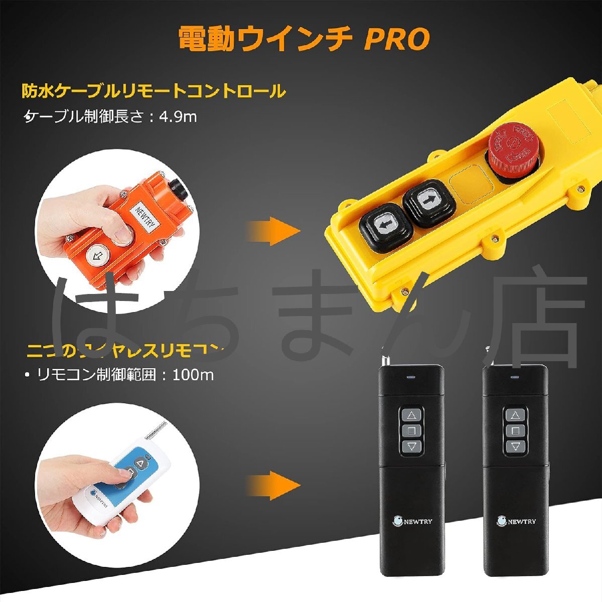 【よりプロフェッショナル】はちまん店が独自に開発した最新型の電動ウインチとして、内外から進化しています。4.9mケーブルモコンはより強い防水材料を採用します。ワイヤレスリモコンの範囲は60mから100mに広がっています。もっと重要なのは、チームワークを考慮して、無線リモコンを追加した、計2つです。