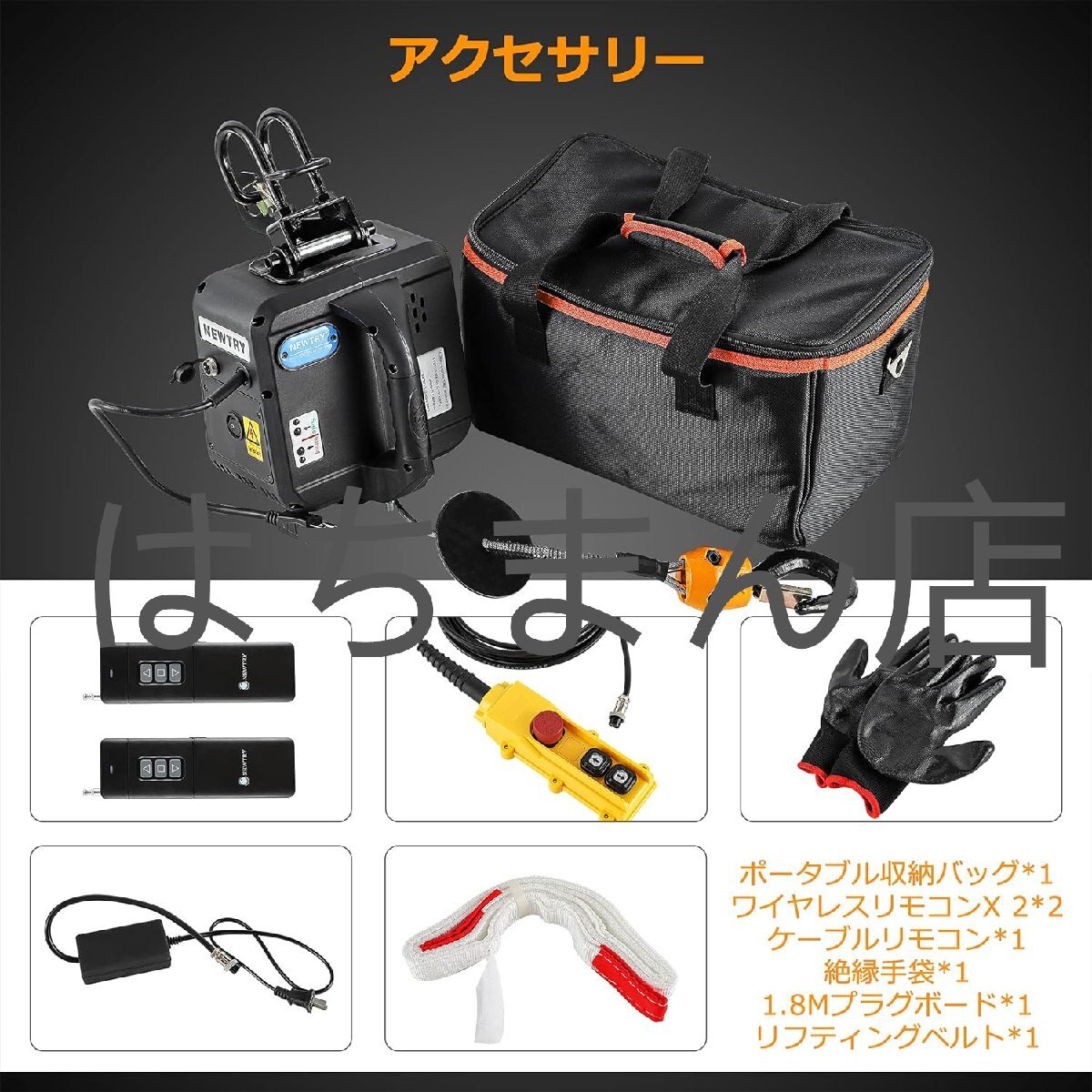 【より便利】お客様が荷物を持ち上げたり、電気ホイストを運ぶのに役立つために、追加のリフティングベルトと収納バッグを提供いたします。定格電圧:100 / 120V~60Hz |プラグ:3ピンプラグ 変換プラグ付き|最大吊り上げ高さ:9m