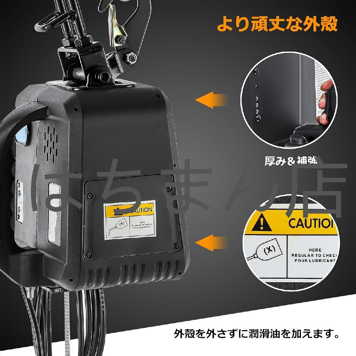 【より安全】上下のフックを360°回転させることができ、安全バックルの設計により落下を防ぐことができます。強力な亜鉛メッキ鋼線ロープは壊れにくいです。限界位置近くまで上昇すると、電動ホイストは自動的に電源を遮断し、効果的に自己保護します。
