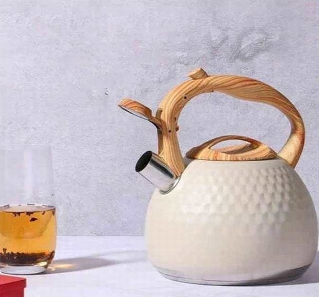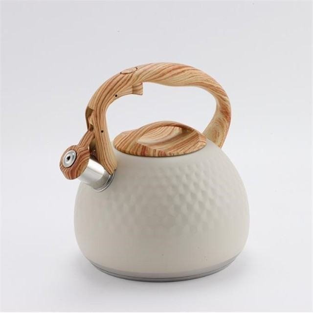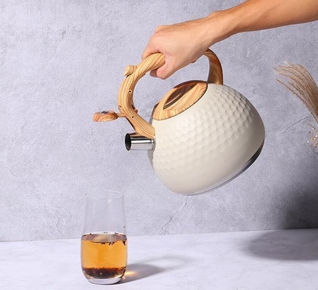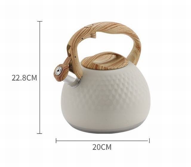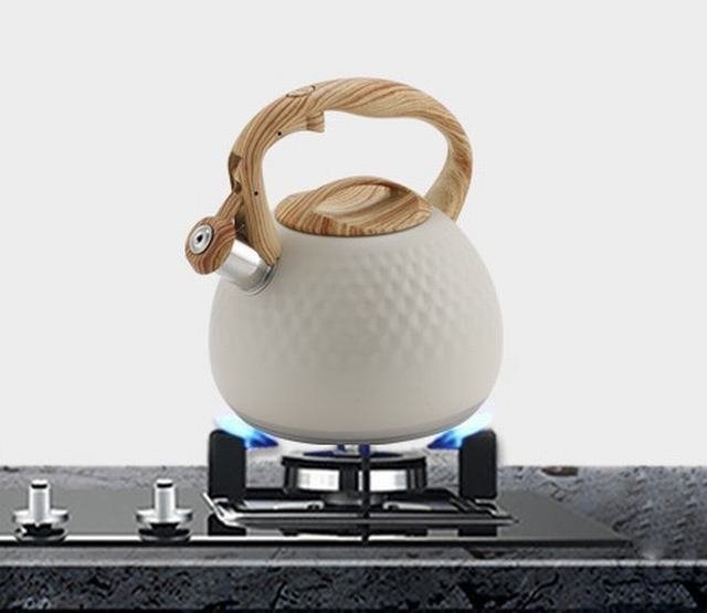 やかん 3L 笛吹きケトル ステンレス製 広口 木目調ハンドル タッチボタン 簡単開閉 ガス対応 大容量 IH対応 かわいい ベージュ MAY485