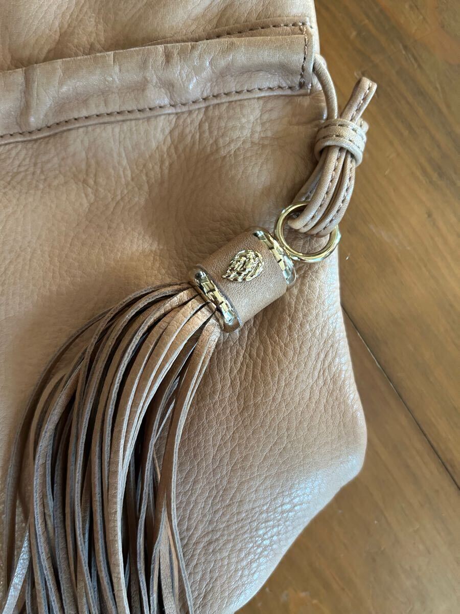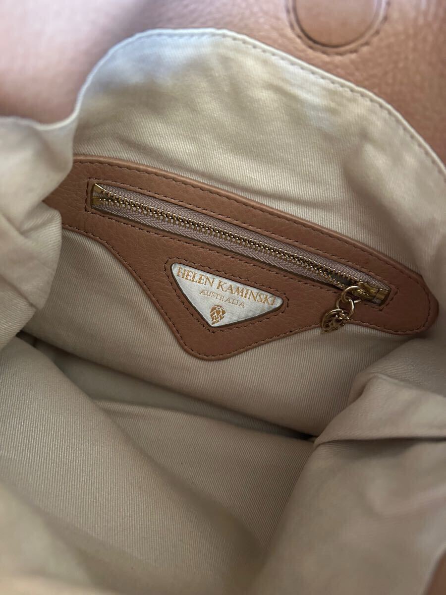 ヘレンカミンスキーのショルダーバッグです。柔らかい皮製です。中には小さなポケット1つ、バッグの両側にはヘレンカミンスキーのマークがついたタッセルが付いています。サイズは縦約25センチ横約25.5センチです。多少の使用感や裏地の汚れはありますが、比較的綺麗だと思われます。ノークレーム・ノーリターンでお願い致します。