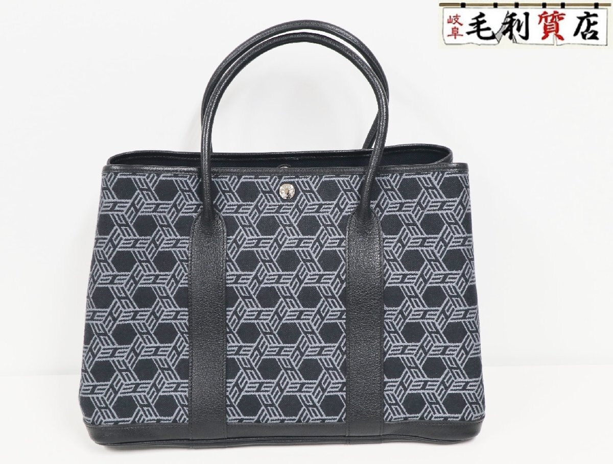 | エルメス HERMES ガーデンパーティ 36 PM □K刻印 ネイビー ブラック シルバー金具 トワルソーアッシュ ブッフル 美品 トートバッグ バッグ |