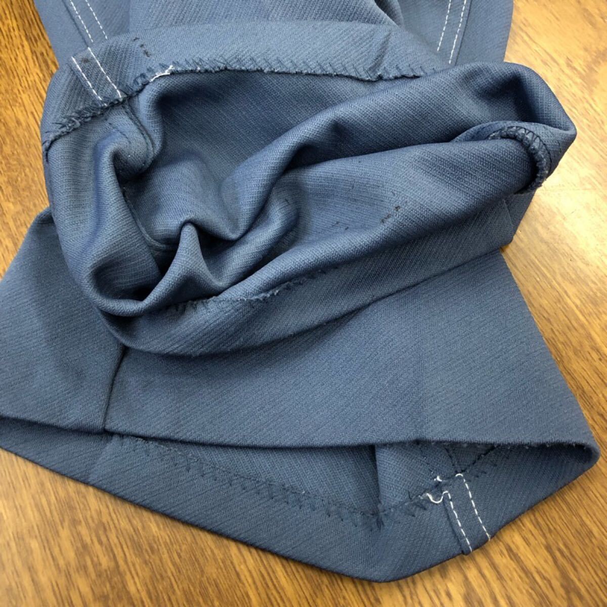 ●ウエスト→フロントボタンやジップは閉じ、ウエストの表中心と後ろ中心を合わせて机や床など平面な場所に置き、フラットに測れるよう生地を軽く手で押さえ、平置きしたパンツの左右端の最上部を計測、実寸した数値×2の表記をしてます。