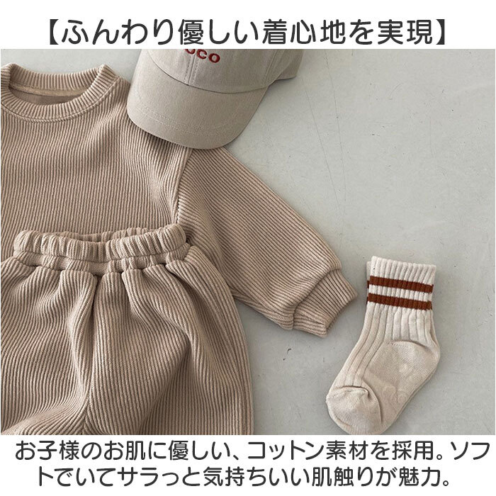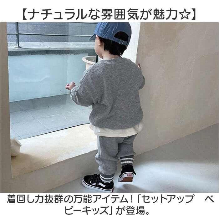 | 商品説明 | ・・【ナチュラルな雰囲気が魅力☆】 ・着回し力抜群の万能アイテム!「セットアップ ベビーキッズ」が登場。 ・【ふんわり優しい着心地を実現】 ・お子様のお肌に優しい、コットン素材を採用。ソフトでいてサラっと気持ちいい肌触りが魅力。 ・【ストレッチ生地でのびのびラクチン】 ・元気な動きを邪魔しない、伸縮性のある生地。そのままお昼寝しても大丈夫なラクチンさ♪ ・【長く使える、薄手の生地タイプ】 ・春秋冬OKな、薄手生地。すぐにサイズアウトしてしまうから、たくさん着られるのが嬉しい☆ ・【シンプルだから無限の着回し力!】 ・セットアップできるのはもちろん、上下別の単品使いをするのもGOOD!ヘビロテ確定の1着。 ・【大きめのサイズ展開が嬉しい☆】 ・ベビーからキッズまでOKの豊富なサイズバラエティー。兄弟姉妹でおそろいにできる☆ ・【お祝いやギフトにもオススメ】 ・女の子も男の子も似合うアイテムなので、贈り物にもぴったり!きっと喜ばれる♪ |