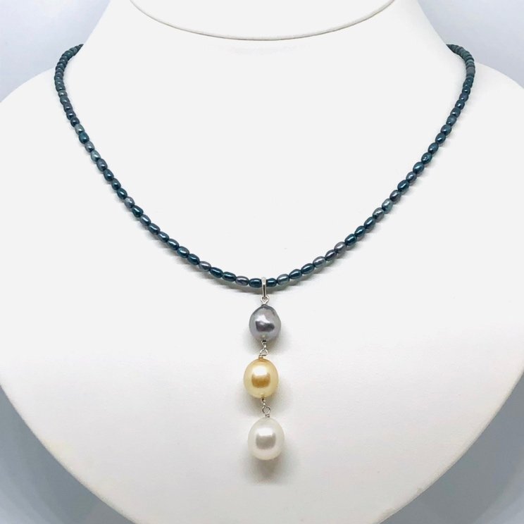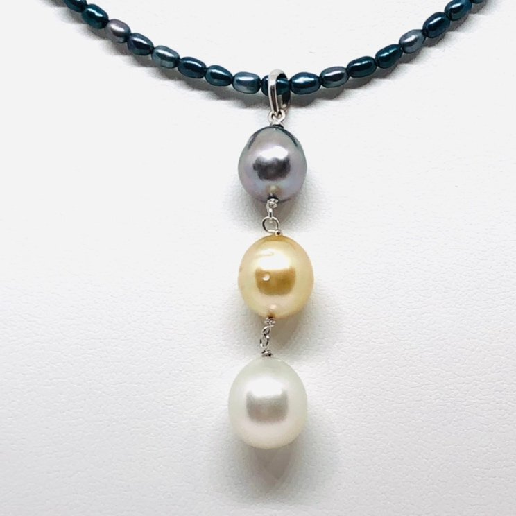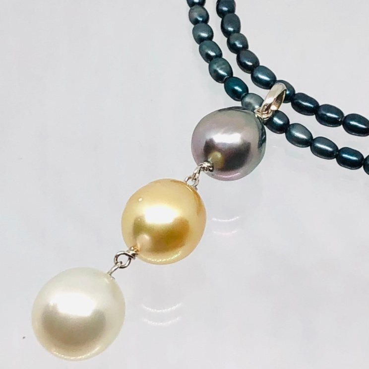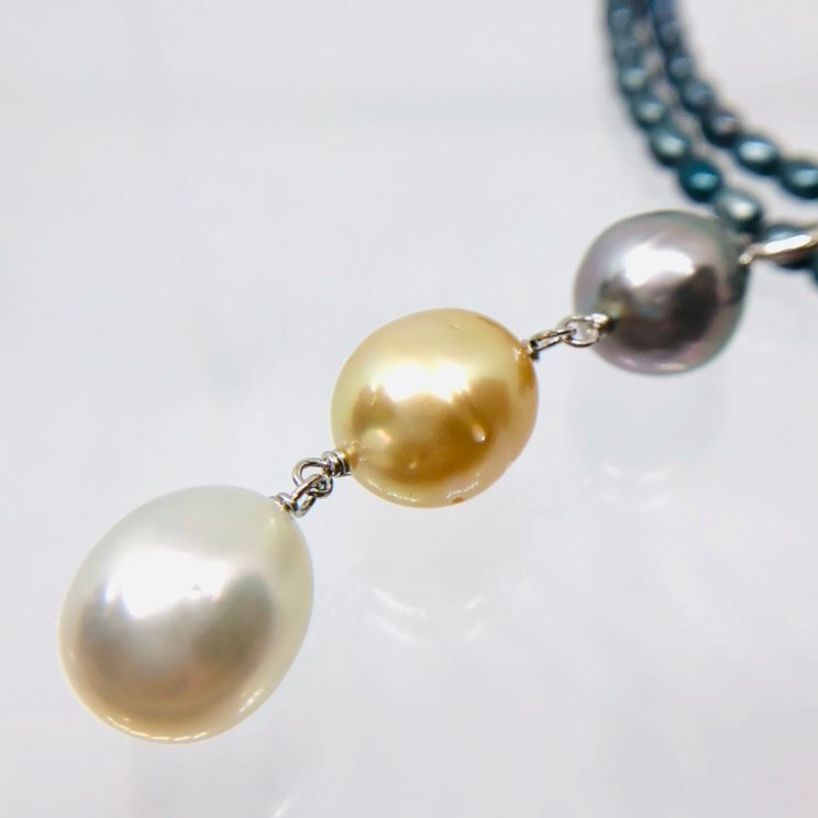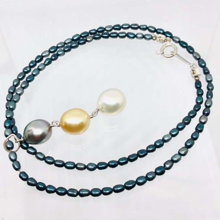 サイズ | (約)3パール 8.7・9.7・10.0mm珠 ネックレス 2.7mm 全長 44㎝ 10.2g