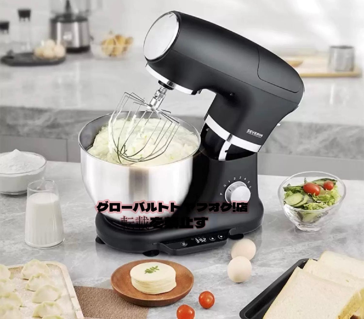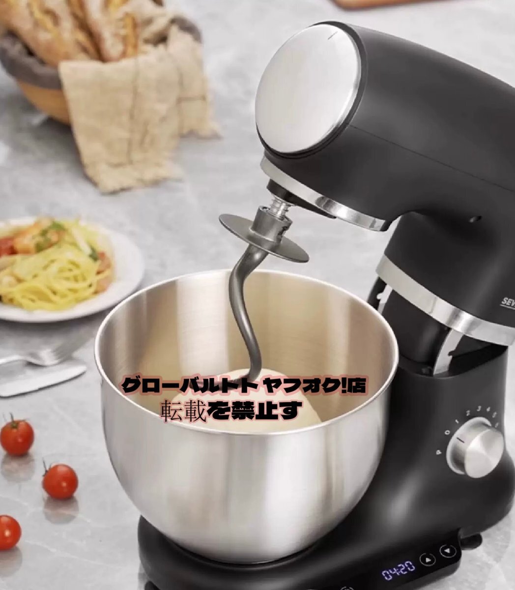 1、【業界でも驚きの多機能スタンドミキサー】洋菓子店、レストラン、家庭などでも簡単にお菓子・パン作りに大活躍の多機能スタンドミキサーです。約6リットルサイズの超大撹拌容量は1.5キロ程度の生地を混ぜられるのはもちろん、解除ボタンを押さないと下がらないように設計されたヘッドアップデザイン、1200W高性能純銅モーターと7階段までのスピード調節設計は自動で力強い攪拌をコントロール、両手が解放され、別の作業を同時に進行する事もできます。