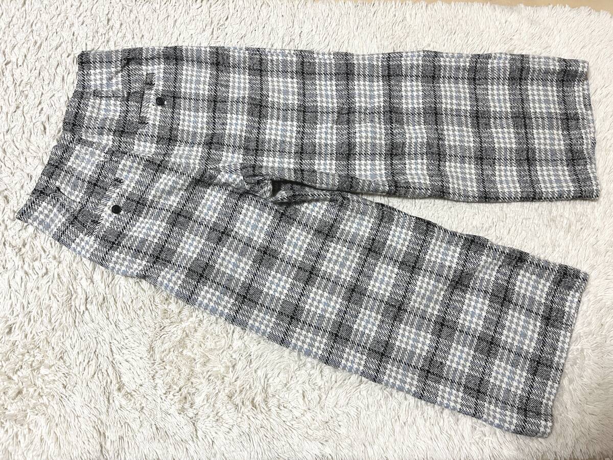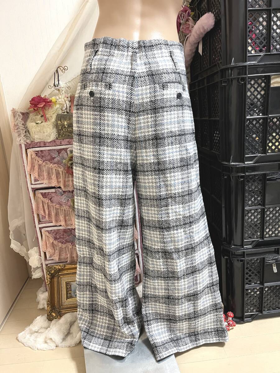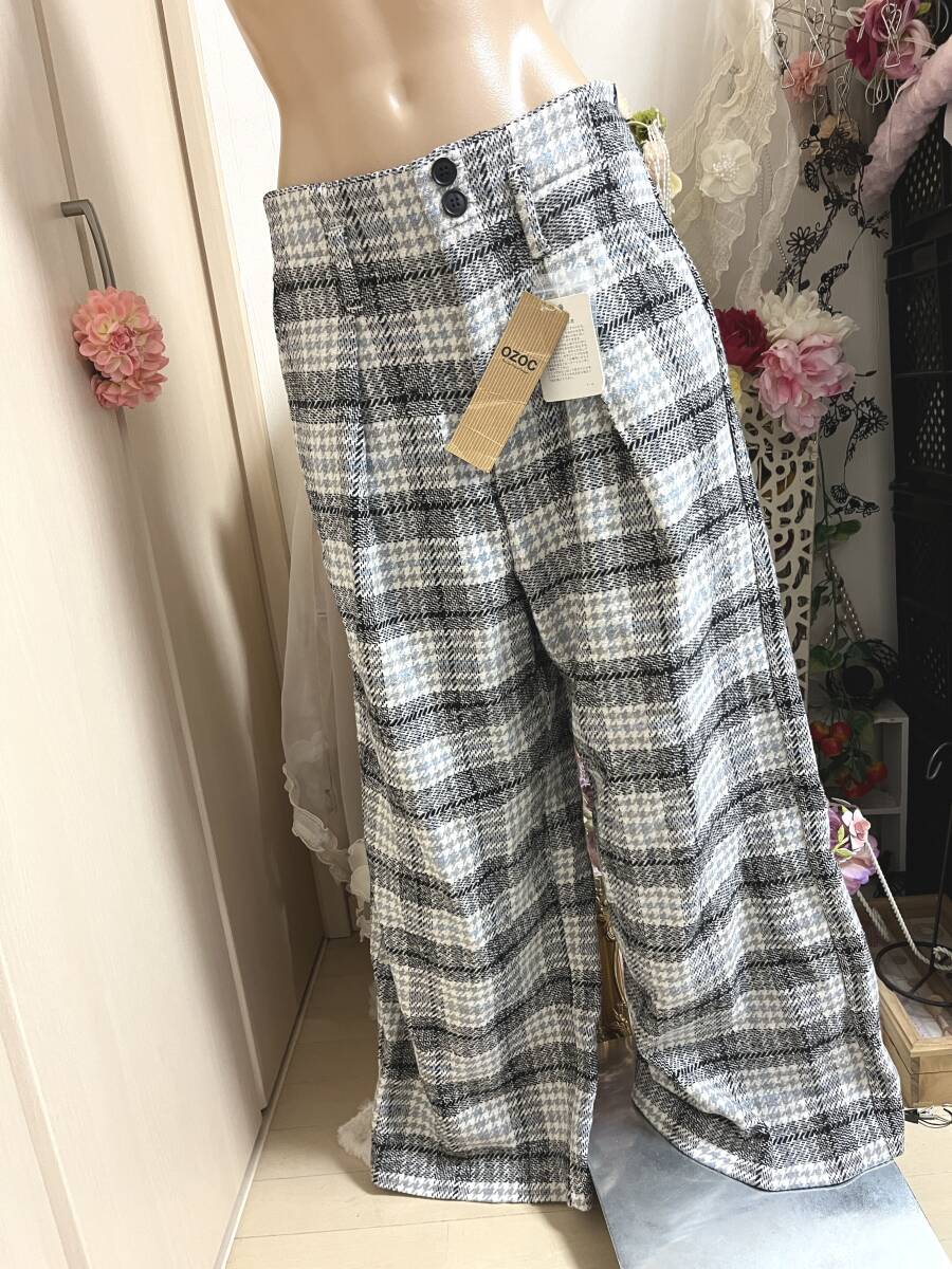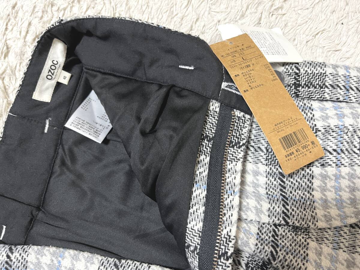 レディースLサイズ:ワールド【OZOC】裏地有り*ワイドパンツ*冬ズボン:黒グレーチェック柄 定価:5,990税