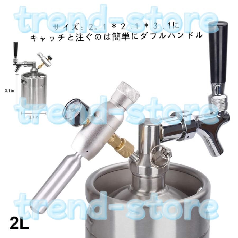 ビールサーバー ビールディスペンサー 缶ビール ステンレス鋼製 2Lビール樽システム カーボネーター蛇口ミニCO2レギュレーター付き 家庭用