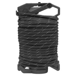 反射材が編み込まれたブラックカラーの50FT(約15m)パラコードが付いており、使い切った際は新しいコードを巻き直して再利用できます。