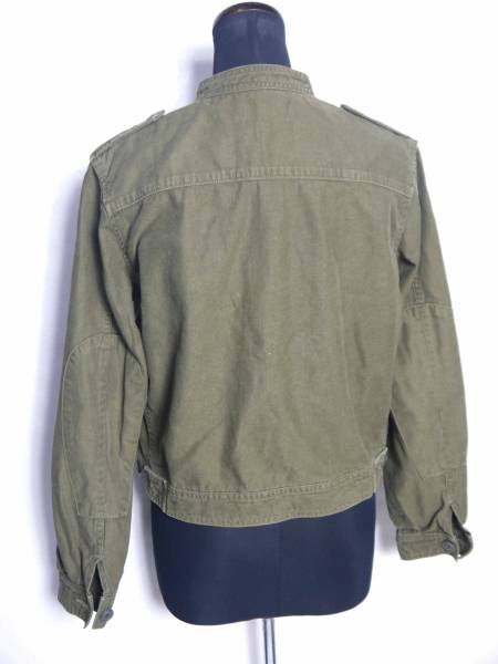 サイズ表記Mで、実測で、肩幅40cm、身幅52cm、着丈(背中側の中央の一番上~裾)54cm、袖丈(肩~袖口)58cmです。