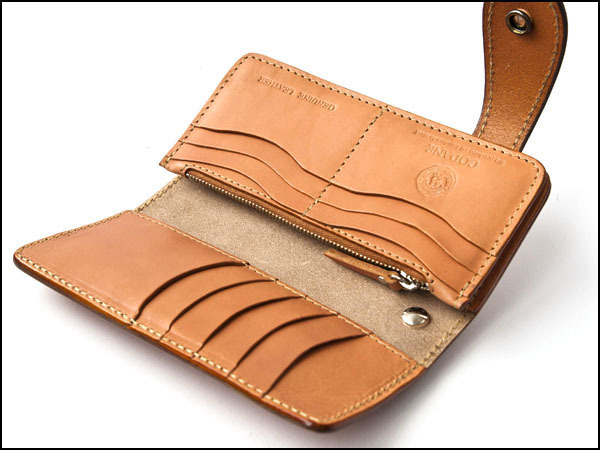 こちらの財布の外革はイギリスThomas ware社のブライドルレザーを使用。